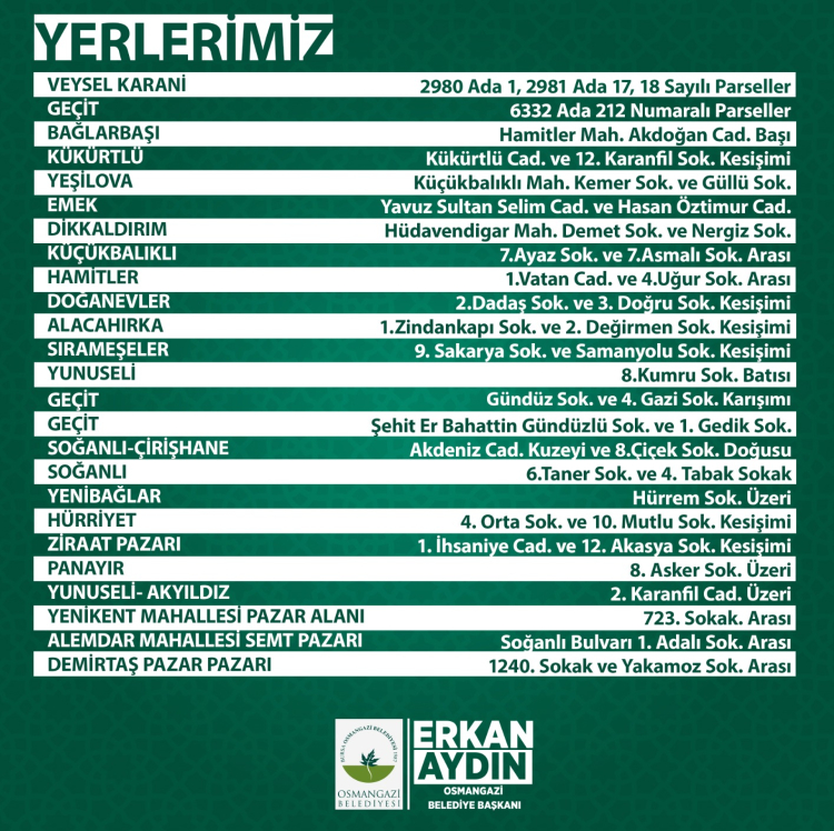 Kurban Bayramı süresince vatandaşlar, kesim alanlarıyla ilgili karşılaştıkları herhangi bir sorun ya da talepleri için 444 16 01 numaralı Osmangazi Belediyesi Çağrı Merkezi’ni arayabilecek.