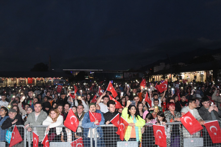 Kutlama programının finali ise ünlü şarkıcı Ceylan Ertem’e aitti. Osmangazi Meydanı’nı dolduran binlerce vatandaş, Ertem’in sahneye çıkmasıyla adeta müziğe doydu. “Yaktın Yandırdın Beni” şarkısı ile konserine başlayan sanatçı, yaklaşık 90 dakika süren sahne performansında “Hakim Bey”, “Yolcu”, “Şinanay”, “Seni Yerler” ve “Rakkas” gibi sevilen parçaları seslendirdi.
