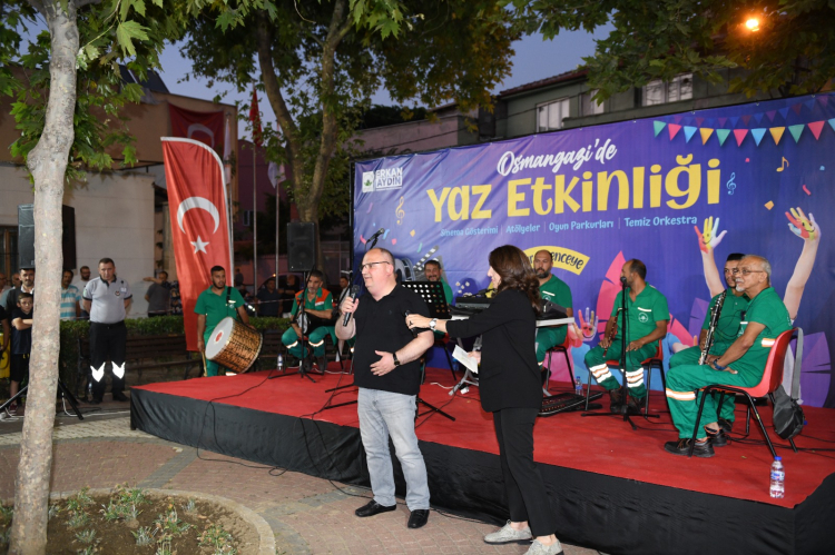 Etkinliklerin finalinde ise sahneye çıkan Osmangazi Belediyesi Temizlik İşleri Müdürlüğü bünyesindeki “Temiz Orkestra”, söyledikleri pop, arabesk ve halk müziği parçalarıyla büyük beğeni topladı. Vatandaşlar sahnede söylenen şarkılara eşlik ederken, oyunlar ve danslarla geceyi eğlenceyle noktaladı.