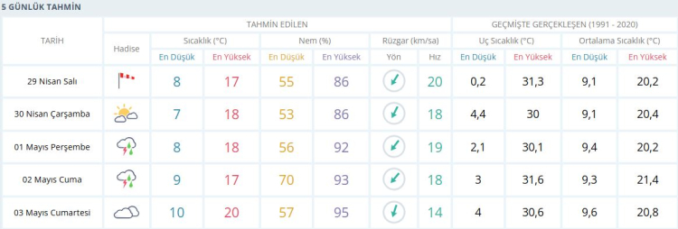 5 GÜNLÜK BURSA HAVA DURUMU TAHMİNİ (29 NİSAN - 3 MAYIS 2025)