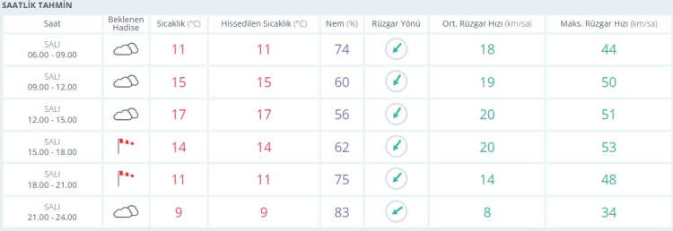 Öğleye doğru (09.00-12.00) sıcaklık 15°C’ye çıkarken rüzgar hızlanıyor (50 km/sa’ye kadar).