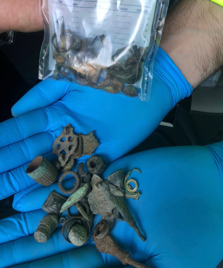 Araçta yapılan detaylı aramada, çeşitli dönemlere ait olduğu değerlendirilen 222 sikke ve 41 farklı boyutta tarihi obje bulundu. Bulunan eserlerin, geçmiş dönemlerden kalma kültürel mirasımızı temsil eden önemli parçalar olduğu ifade edildi.