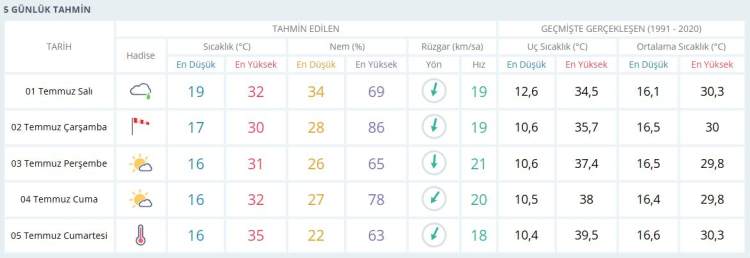 Geçmiş yılların verilerine göre 1991–2020 aralığında 1 Temmuz’da en yüksek sıcaklık 34,5°C olarak ölçülmüş, ortalama değer ise 30,3°C olmuştu. 2025 yazı da bu sıcaklık bandına oldukça yakın seyrediyor.