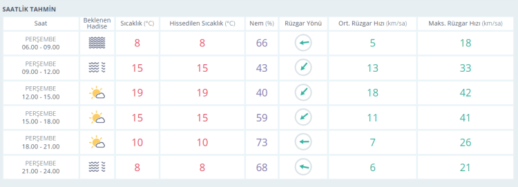 9 Kasım Cumartesi: Hava çok bulutlu. En yüksek sıcaklık 19, en düşük sıcaklık ise 7…