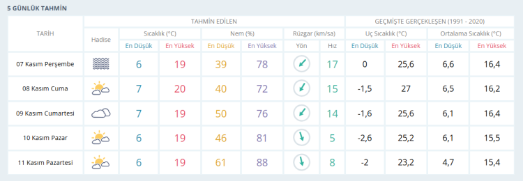 11 Kasım Pazartesi: Hava parçalı bulutlu. En yüksek sıcaklık 19, en düşük sıcaklık ise 6…