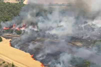 Bursa’nın Yenişehir ilçesine bağlı Demirboğa Mahallesi'nde çıkan yangın, geniş buğday tarlalarını kısa sürede etkisi altına aldı. Gökyüzünü kaplayan yoğun duman, bölgedeki vatandaşları tedirgin ederken, ekipler yangına havadan ve karadan müdahale etti.