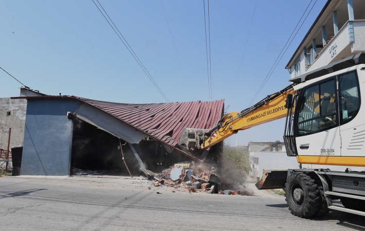 Bursa’da Osmangazi Belediyesi, kaçak yapılaşmaya karşı başlattığı mücadeleye hız kesmeden devam ediyor. Geçit Mahallesi’nde yüksek gerilim hattının altına ruhsatsız olarak inşa edilen iş yeri, ekipler tarafından kontrollü bir şekilde yıkıldı.