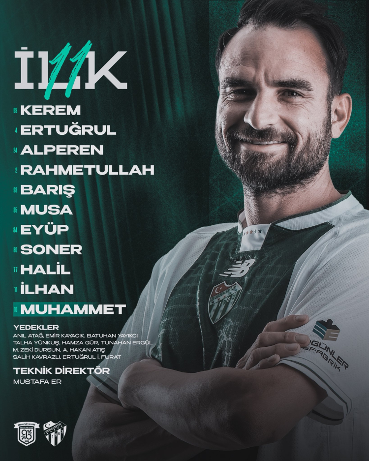 Bursaspor’un Arnavutköy Belediyespor karşısındaki ilk 11’i: