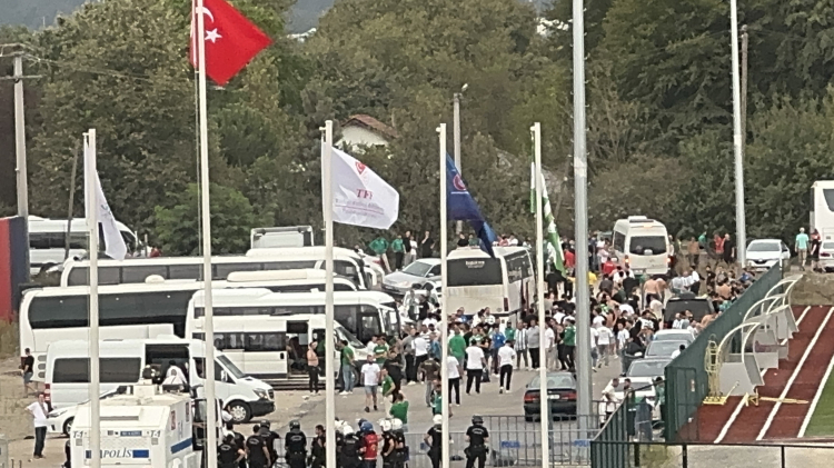 Maç için ayrılan 450 kişilik deplasman kontenjanının çok üzerinde bir kalabalık, yaklaşık 5 bin Bursaspor taraftarı Düzce’ye akın etti.
