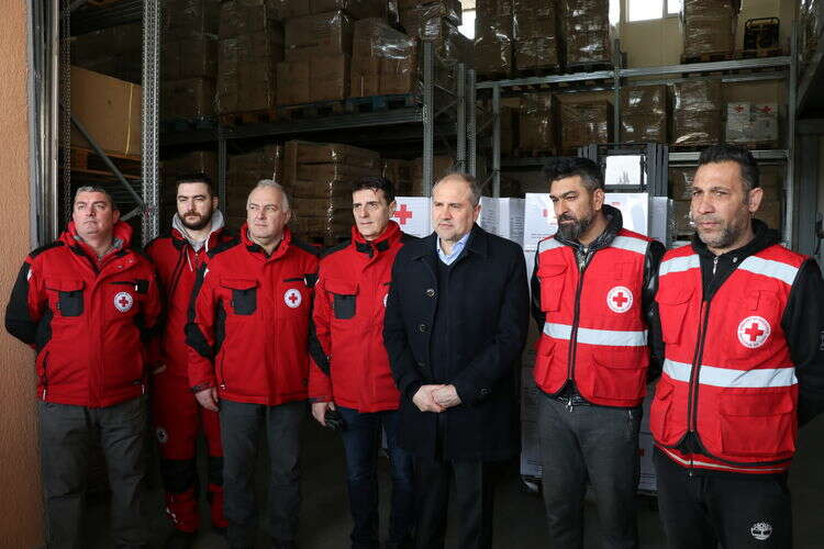 Sekizkök, "Gaziantep'te Türk Kızılay'a teslim edilmek üzere şu anda 2 tıra yüklenmekte olan 25 ton gıda ve hijyen malzemesinin yanı sıra 4 bin battaniyenin bulunduğu Makedonya Kızılhaç merkezindeyiz." dedi.