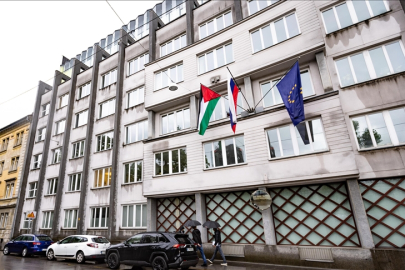 Slovenya'nın başkenti Lübliyana'daki hükümet binasına Filistin bayrağı asıldı.
