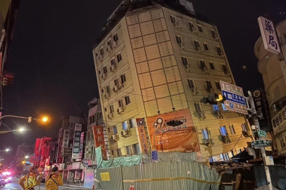 Tayvan’da meydana gelen 6.2 büyüklüğündeki depremde 7 katlı bir binanın yan yattığı görüldü.