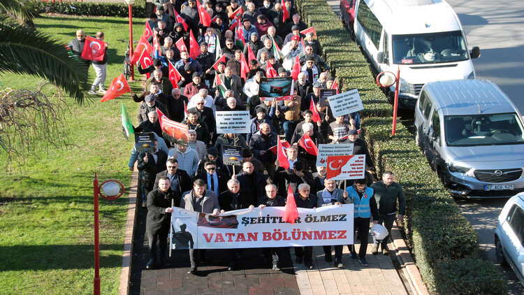 "Şehitler ölmez, vatan bölünmez", "Vatan sana canım feda", "Şehitlerin intikamı alınacak, analar ağlamayacak" sloganları atan grup, daha sonra basın açıklaması yaptı.