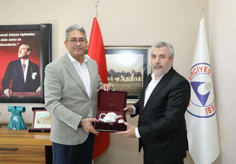 Erciyes Üniversitesi (ERÜ) Rektör Vekili Prof. Dr. Oktay Özkan'ın ev sahipliğinde gerçekleşen ziyaret sırasında, ÖSYM Başkanı Prof. Dr. Bayram Ali Ersoy, ERÜ'deki akademik faaliyetler hakkında bilgi aldı.