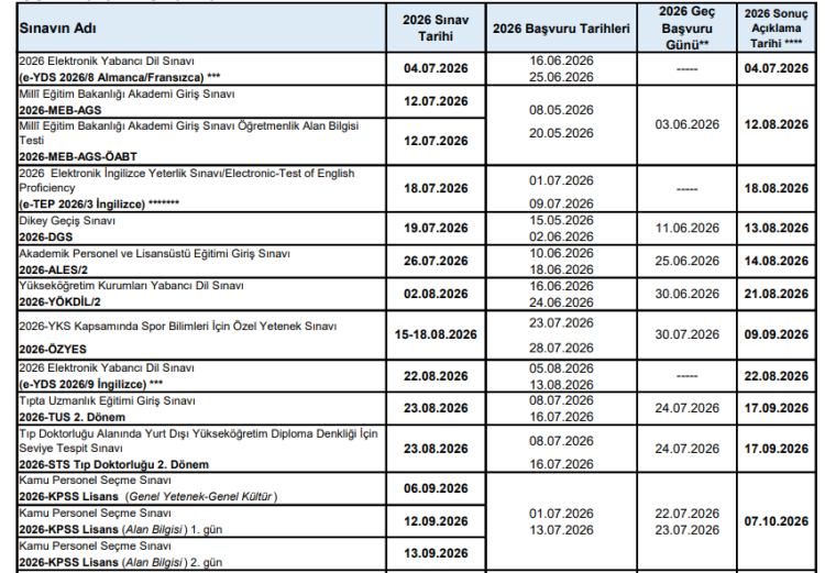 ÖSYM 2026 SINAV TAKVİMİ İÇİN TIKLAYINIZ