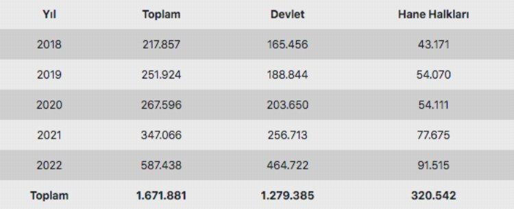 Toplam eğitim harcaması 2018'de 217 milyar 857 milyon lira iken 2019'da 251 milyar 924 milyon lira, 2020'de 267 milyar 596 milyon lira oldu. 2021'de 347 milyar 66 milyon lirayı bulan söz konusu harcamalar, geçen yıl 587 milyar 438 milyon liraya ulaştı.