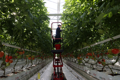 Düzenli depolamadan elde edilen metan gazı ile saatte 2 bin 400 kilovatsaat enerji üretilen tesisin yanına 50 dönümlük alanda kurulan Hollanda usulü modern topraksız cam serada salkım domates yetiştiriliyor.