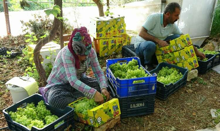 Türkiye'nin tarım da üretim merkezlerinden Mersin'de örtü altında turfanda hasatlar devam ediyor. Karadut, erik gibi ürünlerin ardından yine örtü altı yetiştirilen beyaz üzümde hasat başladı. Erdemli Kocahasanlı bölgesinde sezonun ilk üzümleri bugün hasat edildi. Üreticilerin önemli bir gelir kapısı olan turfanda üzümün ilk hasadı temsili olarak 300 TL'den alıcı bulu. Özenle hasat edilip paketlenen üzümlerin yurt içinde İstanbul, Ankara, İzmir, Konya ve Bursa gibi büyük şehirlere ardından da Avrupa ile Arap ülkelerine gönderileceği ifade edildi. İlk hasadın temsili 300 TL'den alındığı üzümün piyasa da ilk 15 gün de 150 TL civarında olması beklendiği kaydedildi.