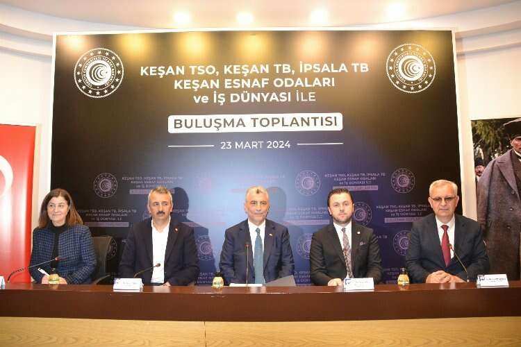 Keşan’da SKM ve esnaf ziyaretlerinin ardından Keşan TSO Konferans Salonu’nda başlayan toplantıda konuşan Bakan Bolat, Türkiye'nin Avrupa'ya ve dünyaya açıldığı 5 önemli kapının 4’ünün Edirne’de olduğuna dikkat çekerek, şunları söyledi: “O yüzden Edirne tarihimizde başkentlik yapmış çok önemli tarihi şehrimiz olduğu kadar tarımda turizmde hizmetlerde ve eğitimde üniversitesi ile beraber çok önemli bir yer tutuyor. Hükümetimiz 21 yıl boyunca Edirne'ye kamu yatırımları olarak 111 milyar Türk Lirası yatırım yaptı. Bunun yanında 29 milyar lira çiftçilerimize tarımsal sübvansiyonlar verildi. DSİ'nin Edirne'de yaptığı projelerde ki 8 tane baraj, 55 tane sulama tesisi tamamlandı. Bunlara da 25 milyar Türk Lirası kaynak harcandı. Yani Türkiye Trakya ile Anadolu ile bir bütündür. 21 yıl önce esnaf başına 5 bin TL kredi alabiliyorlardı. O 5 bin liranın karşılığı 3 bin 300 Amerikan Doları idi. bu kredinin faiz maliyetinde devletin katkısı yüzde 20'ydi. Bunların hepsini değiştirdi hükümetimiz ve tam 4 milyon 300 bin kez esnaflarımıza krediler kullandırılmış. Bunun değeri 468 milyar Türk Lirası. Bunun karşılığı da 15 milyar dolar. Yani esnaf başını 25 bin dolar destek veriliyor. Bir müjdeyi de burada paylaşmak istiyorum; esnaflarımız bu kredileri alırken bankaların istediği bir ekspertiz ücreti vardı. 16 bin TL civarında bir rakam. 1 Nisan itibarıyla 1 yılı doldurmuş kooperatiflerimiz ve esnaflarımız ekspertiz ücretini ödemeyecek.”