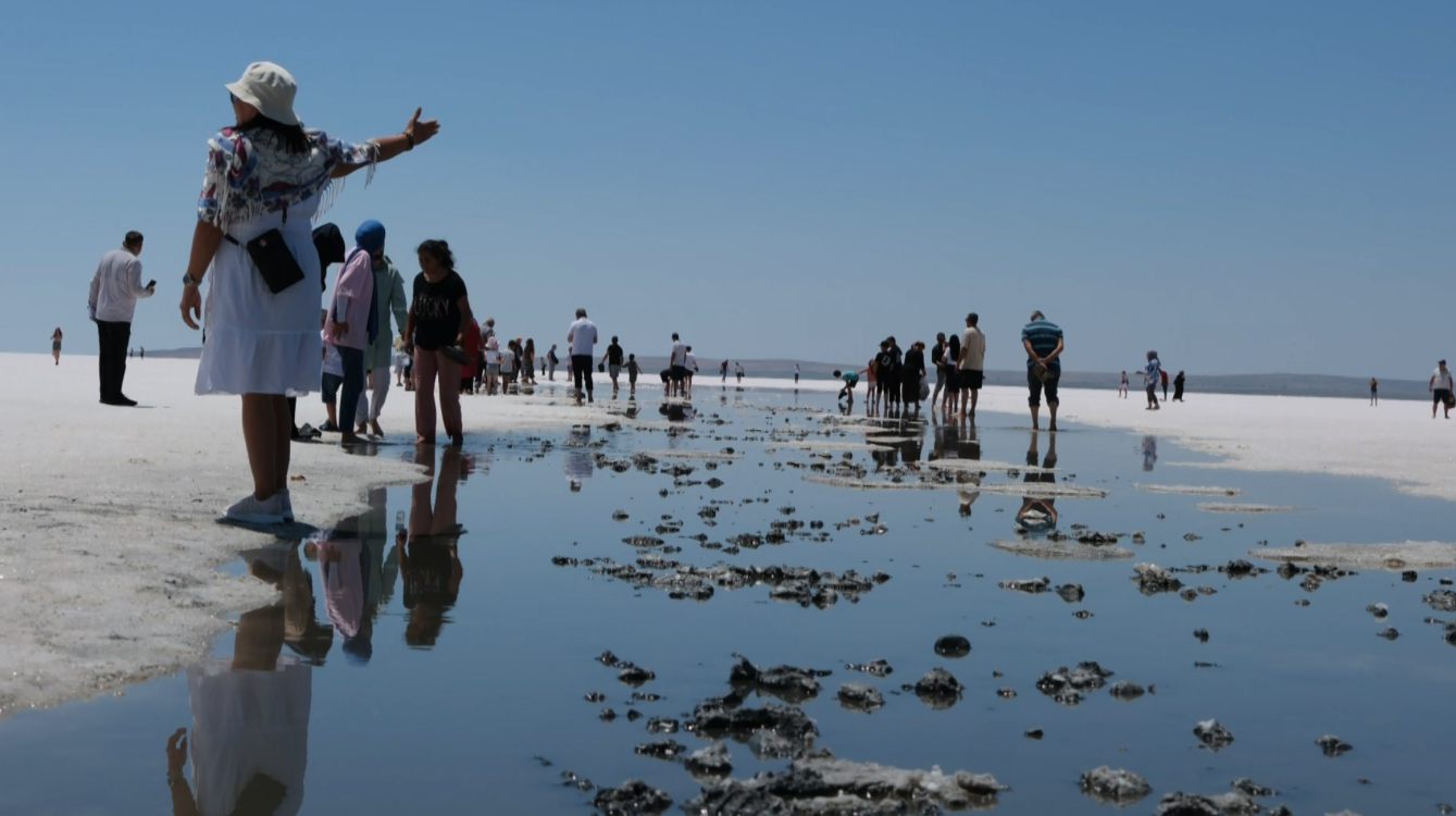 Özellikle havaların ısınması ile birlikte her gün yüzlerce yerli ve yabancı turist Tuz Gölü'nün eşsiz manzarasını izlemek ve şifalı olduğuna inanılan tuzlu suda çıplak ayakla yürüyebilmek için geliyor.