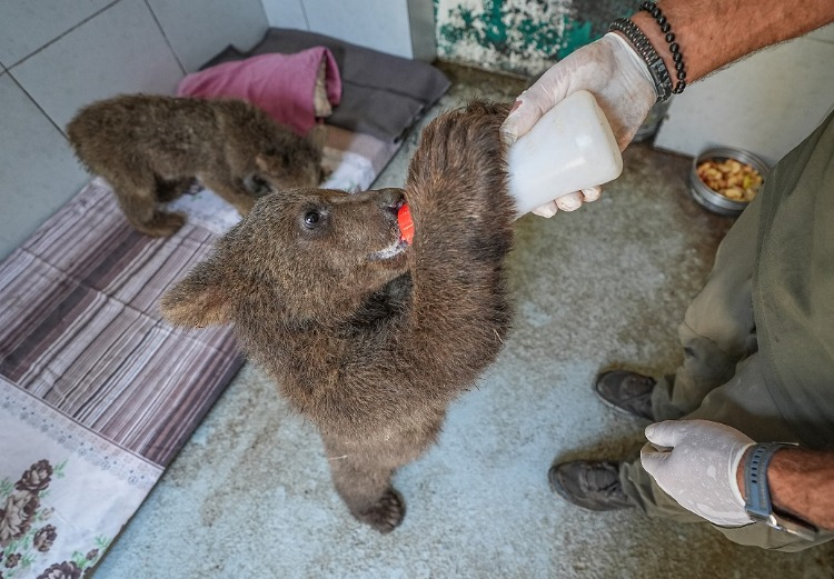Henüz 5 aylık olan yavru ayılar, merkezde günde 6 ila 8 öğün arasında beslenecek şekilde bir programla takip ediliyor.