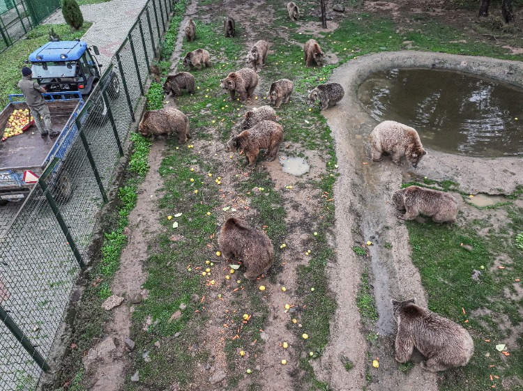Merkezde, doğadan tedavi edilemeyen ve eski sokak gösterilerinden kurtarılan 74 boz ayı, kış mevsiminin zorlu koşullarına dayanabilmek için özel bakım ve beslenme programlarından geçiyor.