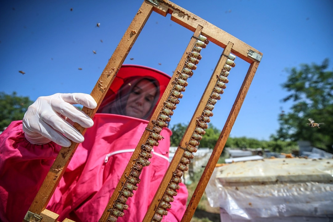 Selma Aydın, "Arı sütü üretimi kadınların olmadan yapabileceği bir iş değil. Eşimizle birlikte çalışmak hem ekonomik destek sağlıyor hem de bizi doğayla iç içe tutuyor" diye konuştu.