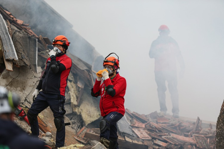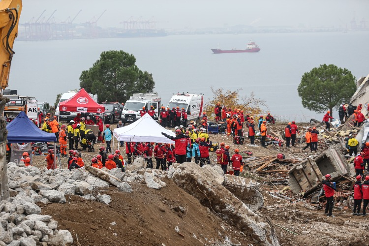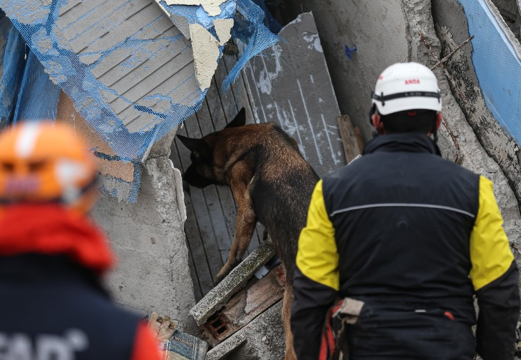 Enkaz bölgesine ilk ulaşan ekipler, arama kurtarma köpeklerinin yardımıyla, yaralıların yerlerini tespit ederek kurtarma işlemlerini başlattı.