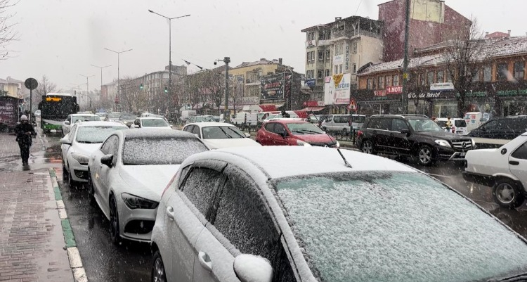 Özellikle kent merkezindeki bazı vatandaşlar, hazırlıksız yakalandıkları kar yağışı nedeniyle trafikte zor anlar yaşadı.