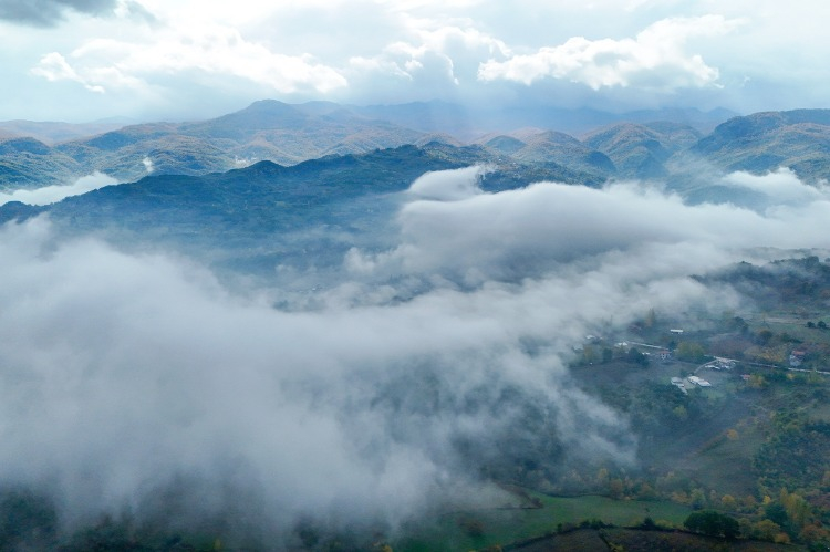 Bölgedeki sis ve sonbaharın pastel tonları, izleyenlere adeta masalsı bir hava sunuyor.