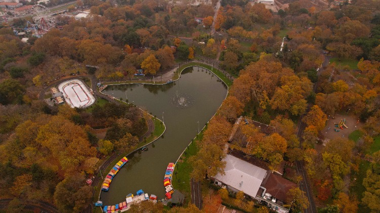Reşat Oyal Kültürparkı’nın sonbahar manzaraları, havadan çekilen drone görüntüleriyle de ölümsüzleştirildi.