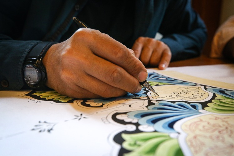 Bilal Deliktaş da 2009'dan beri nakkaşlık mesleğini icra ettiğini, restorasyon ile başladığı meslekte daha sonra sıfırdan cami süslemeleri de yapmaya başladığını anlattı.