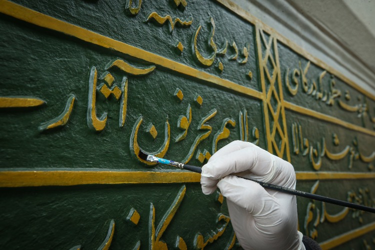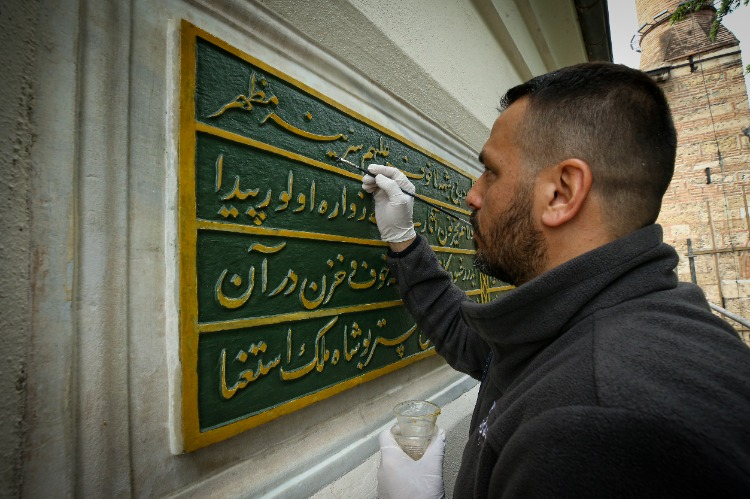 İki nakkaş, büyük dikkat ve sabır gerektiren bu sanatı son olarak Kültür ve Turizm Bakanlığı Vakıflar Genel Müdürlüğü tarafından yürütülen bir projede icra ediyor. Bu proje, Bursa'nın simgelerinden Aziz Mahmud Hüdayi'nin şeyhi, mutasavvıf ve şair Mehmed Muhyiddin Üftade'nin türbesinin kitabesi restorasyon işini kapsıyor.