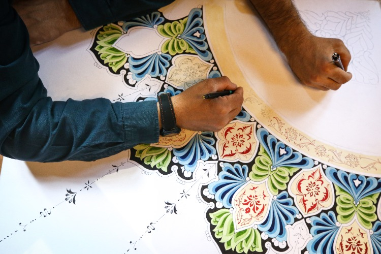 Genç yaşta mesleğe başlayan Ammar Yasir Güler (33) ve Bilal Deliktaş (41), yüzyıllardır süregelen nakkaşlık sanatını tarihi mekanlar ve camilerde icra ederek bu kültürü gelecek nesillere aktarıyor.