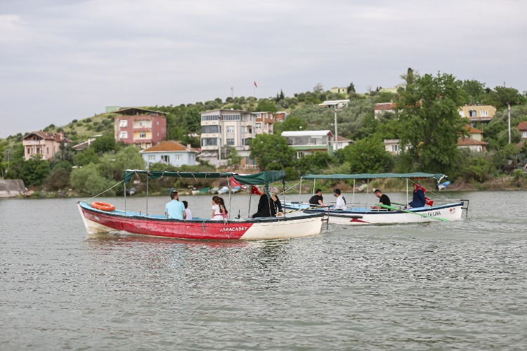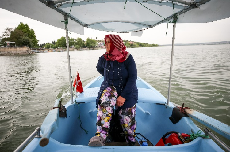 Bursa'nın antik adı Apollonia ad Rhyndacum olan Gölyazı Mahallesi'nde, Uluabat Gölü kıyısında turistlere kayık turları düzenleyen kadınlar, aile bütçelerine katkı sağlıyor.