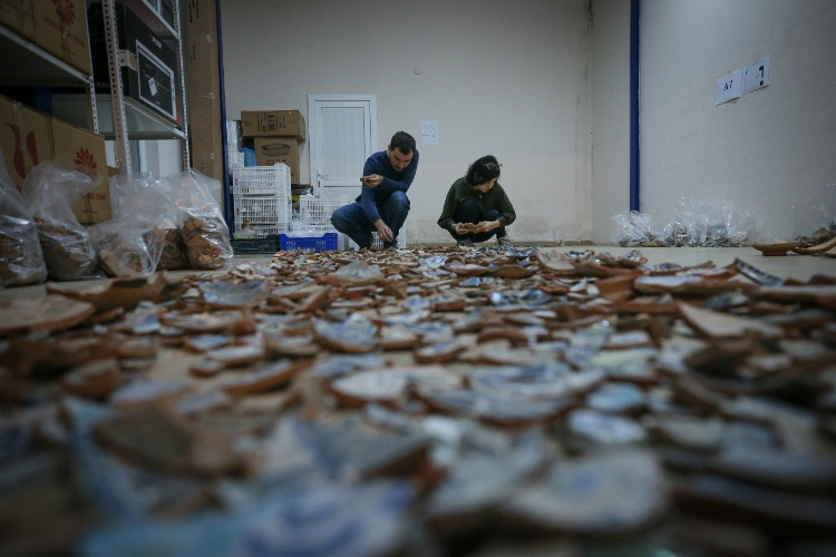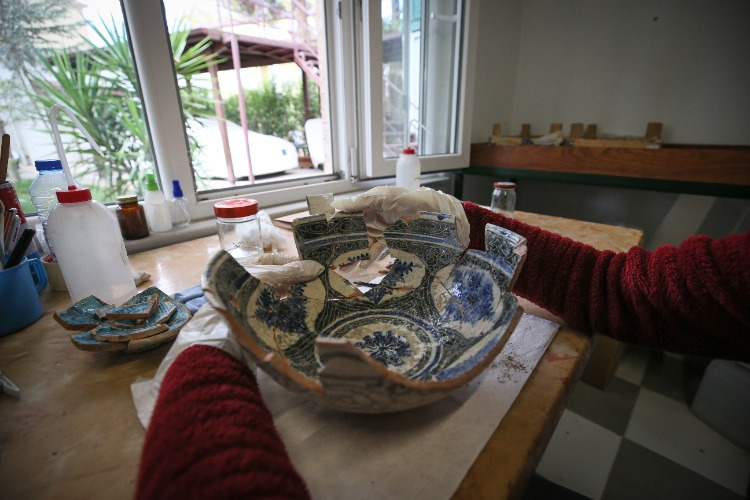 Çini ve seramik parçaları, titizlikle temizlenip İznik Müzesi’ne teslim ediliyor.