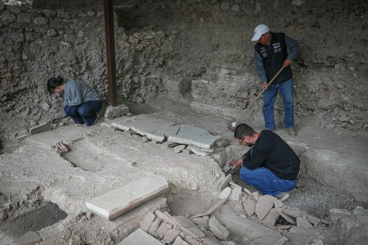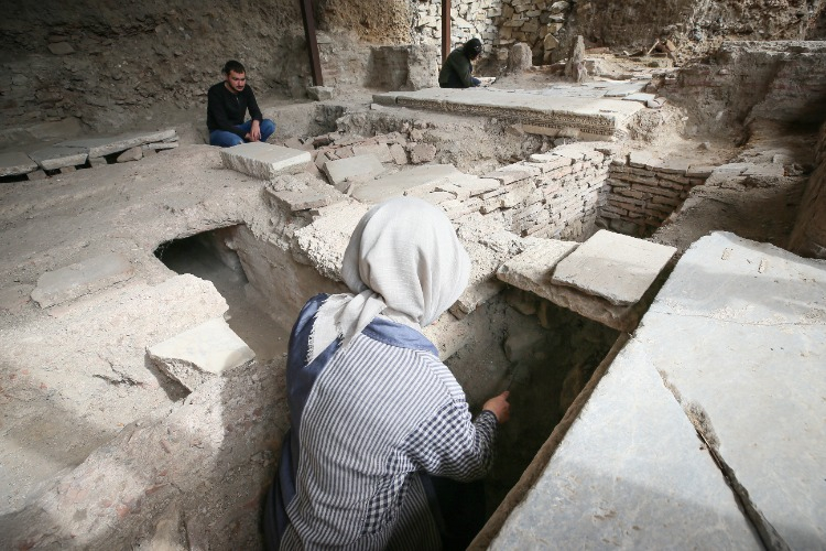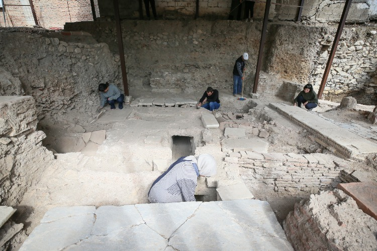 Osmanlı dönemine ait küçük bir hamam kalıntısı da gün yüzüne çıkarıldı.