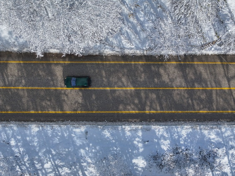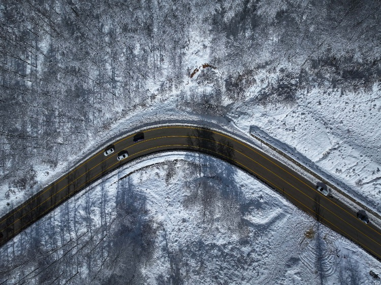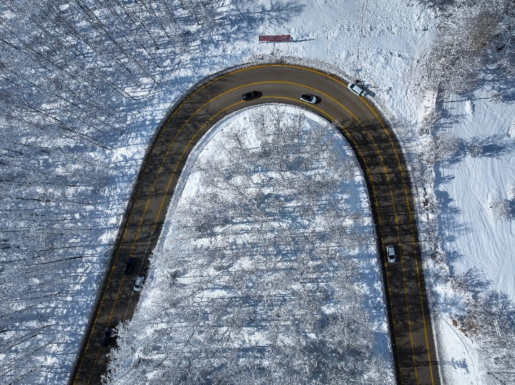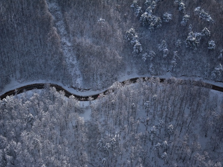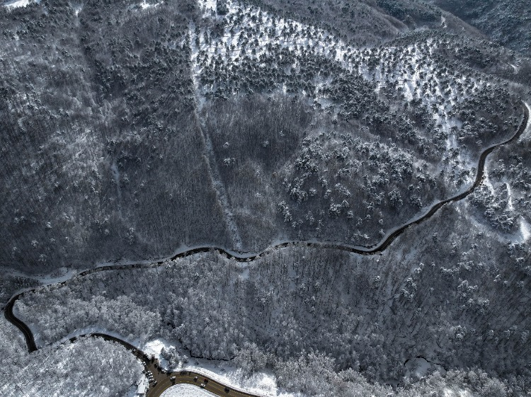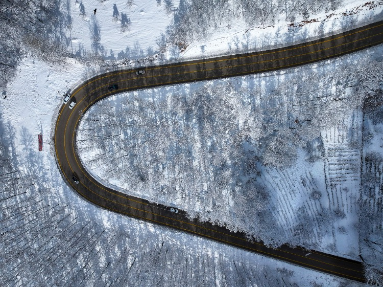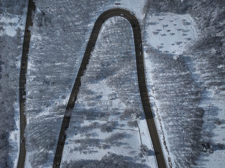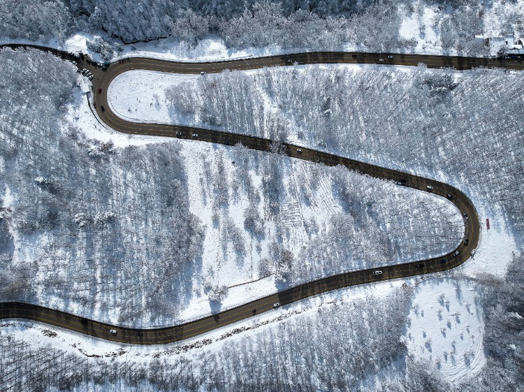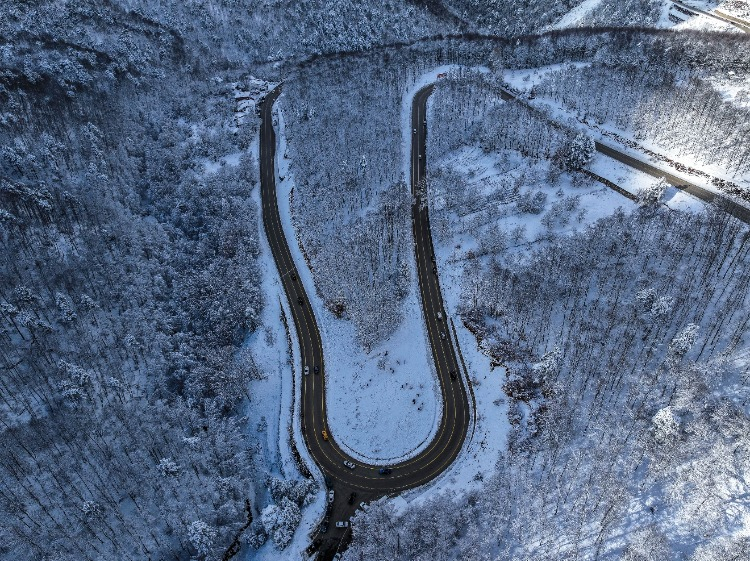 Zirveye doğru kıvrılarak yükselen dağ yolları, karla kaplanarak eşsiz manzaralar oluşturdu.