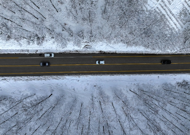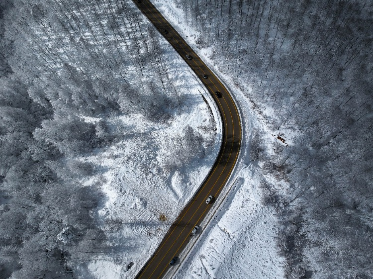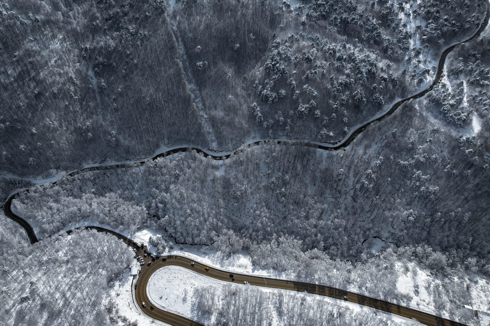 Uludağ’ın zirvesine doğru karla kaplı kıvrımlı yollar
