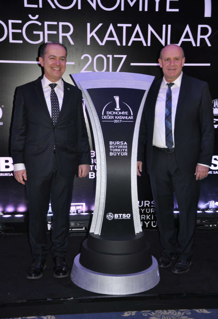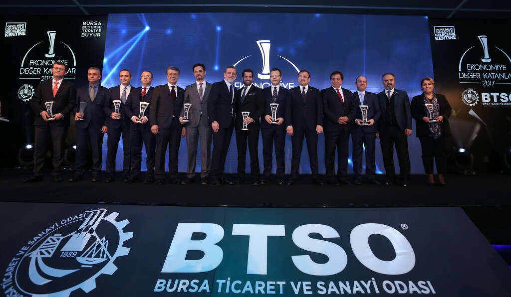 Bursa Ticaret ve Sanayi Odası (BTSO) tarafından bu yıl 44. kez düzenlenen 'Ekonomiye Değer Katanlar Ödül Töreni'nde 8 ayrı kategoride 87 ödül sahiplerini buldu.