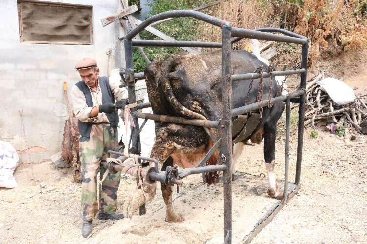 Bursa’nın Keles ilçesi Pınarcık köyünde baba mesleğini devam ettiren 70 yaşındaki Halil Oruç, doğada az gezen ya da gezemeyen besi ve süt ineklerinin tırnaklarını keserek bakım yapıyor. Doğada gezen hayvanların tırnaklarının bir şekilde kırıldığını ya da törpülendiğine dikkat çeken Oruç, dışarı çıkmayan hayvanların periyodik zamanlarda tırnak bakımlarının yapılması gerektiğini ifade etti. Tırnak sağlığının büyükbaş hayvanlar için olmazsa olmaz olduğunu anlatan Oruç, tırnaktan doğacak rahatsızlıkların hayvanları ölüme kadar götürebileceğini sözlerine ekledi.