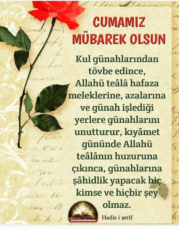 Mübarek Cuma günü yapılacak ibadetlere, diğer günlerde yapılanların, en az iki katı verilmektedir. Buna karşılık ise ,Cuma günü yapılan günahlar da iki kat yazılmaktadır. Cuma gününü en hayırlısı ile geçirmek dileğiyle cumanız mübarek olsun.