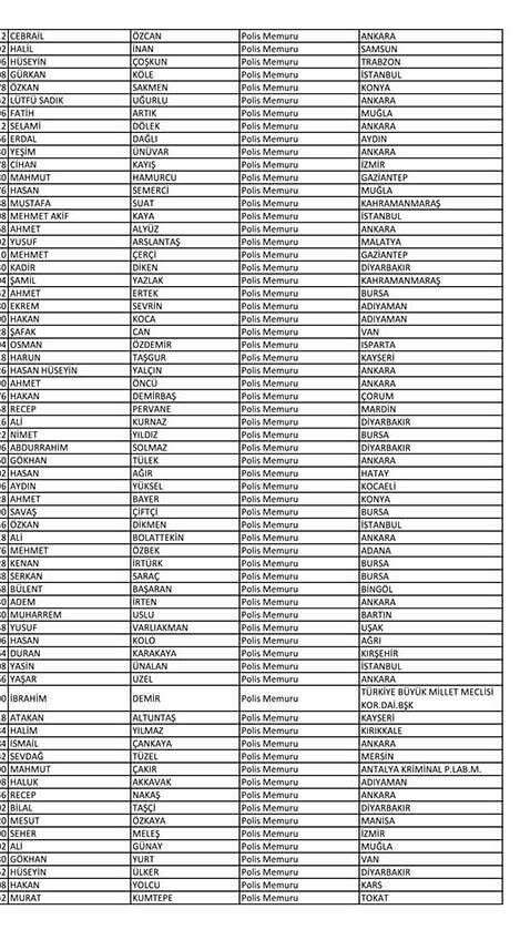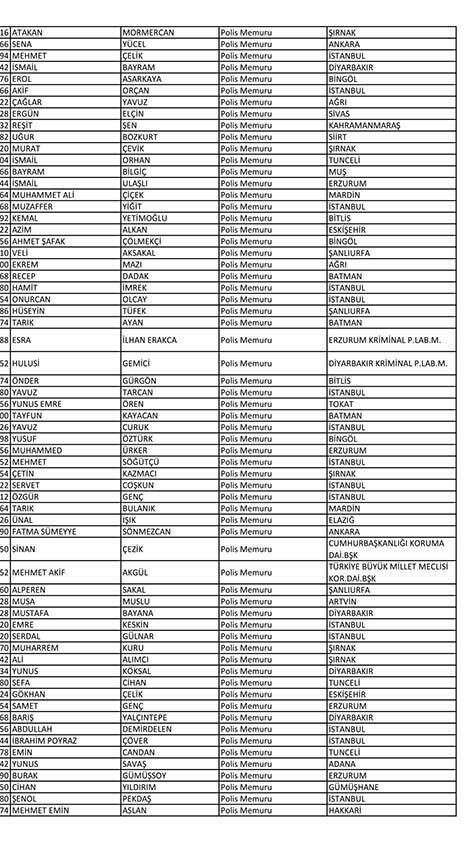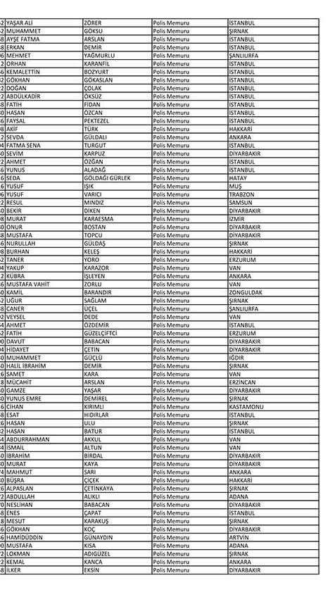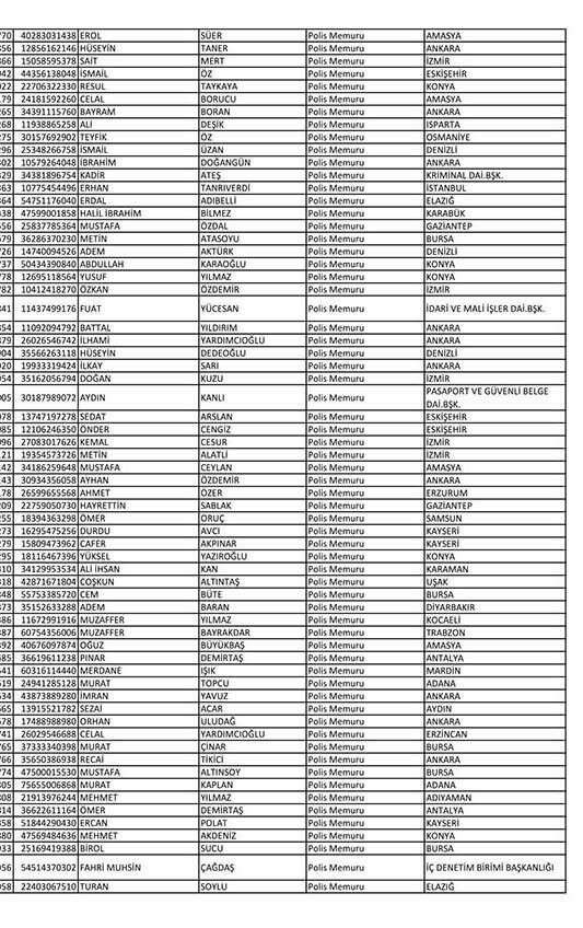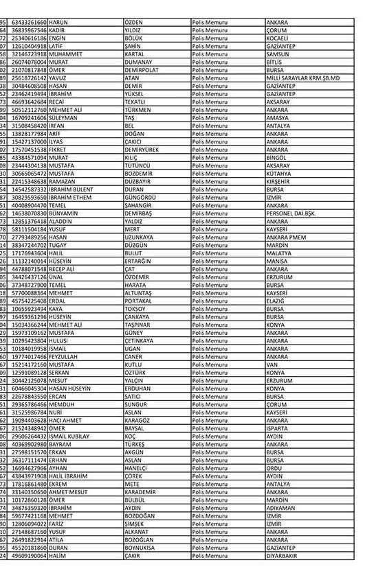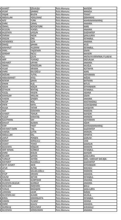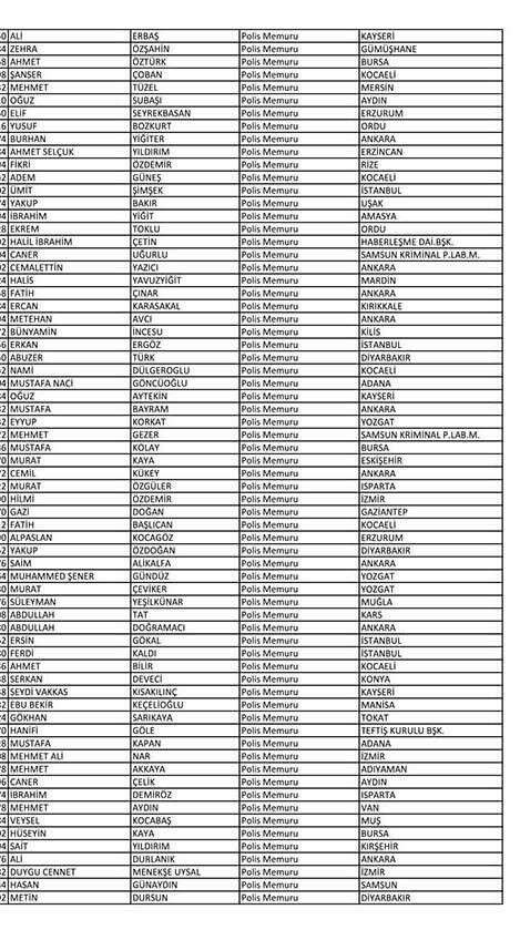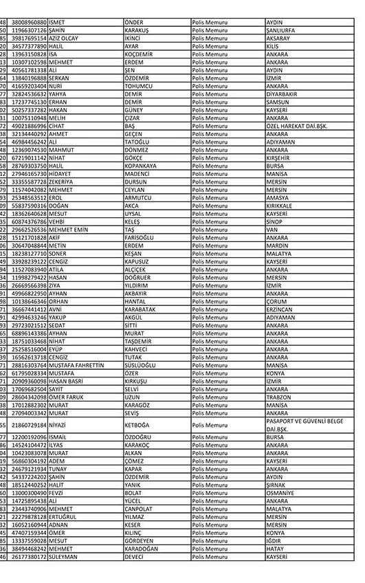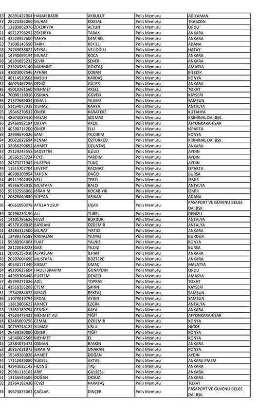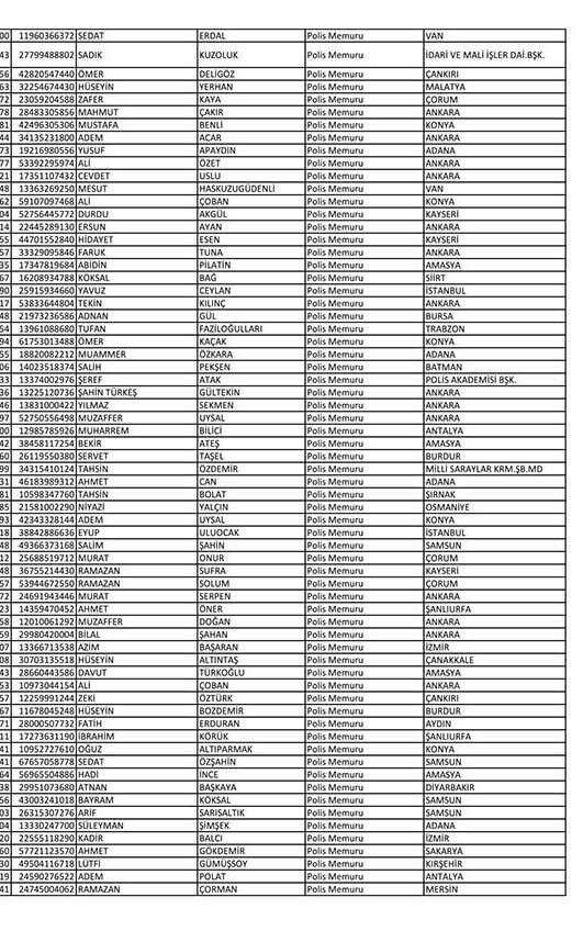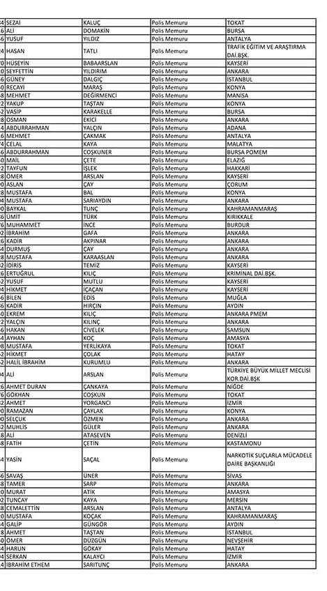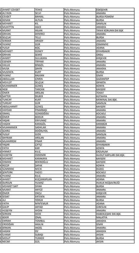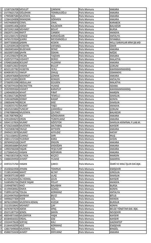Emniyet Genel Müdürlüğü'nün kararıyla açığa alınan 9 bin 103 polisin isimleri belli oldu. İşte il il açığa alınan polislerin tam listesi.
