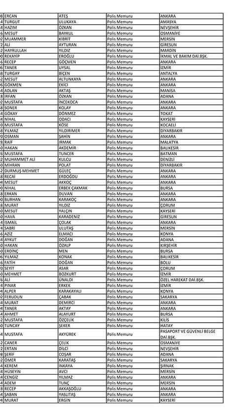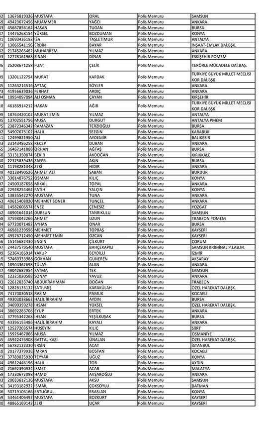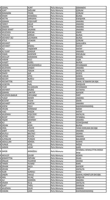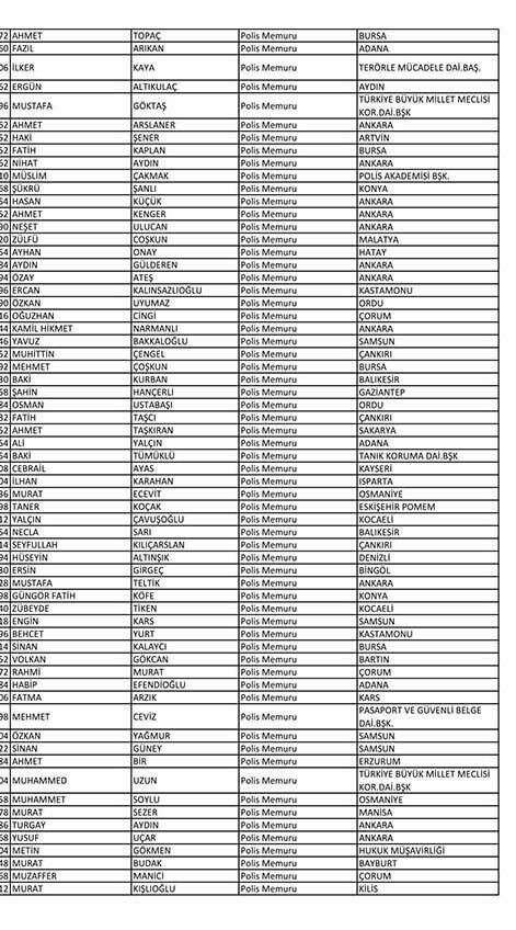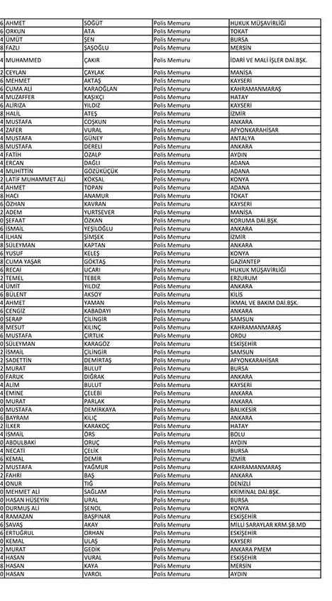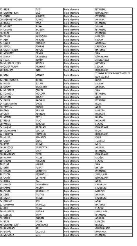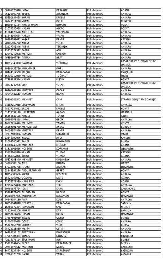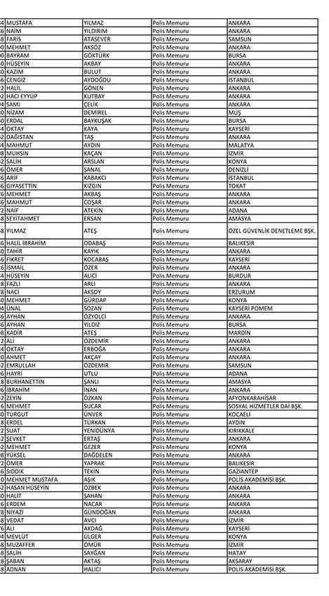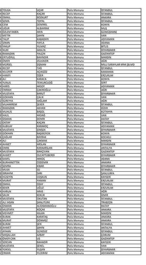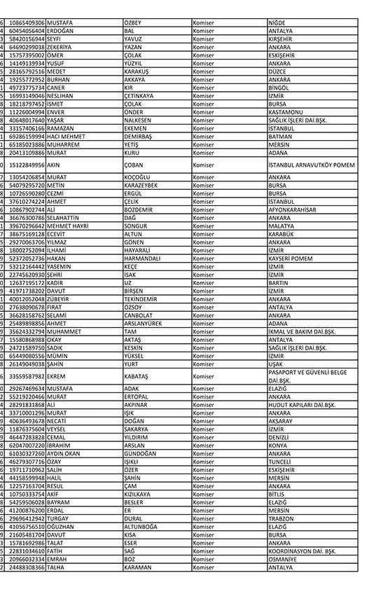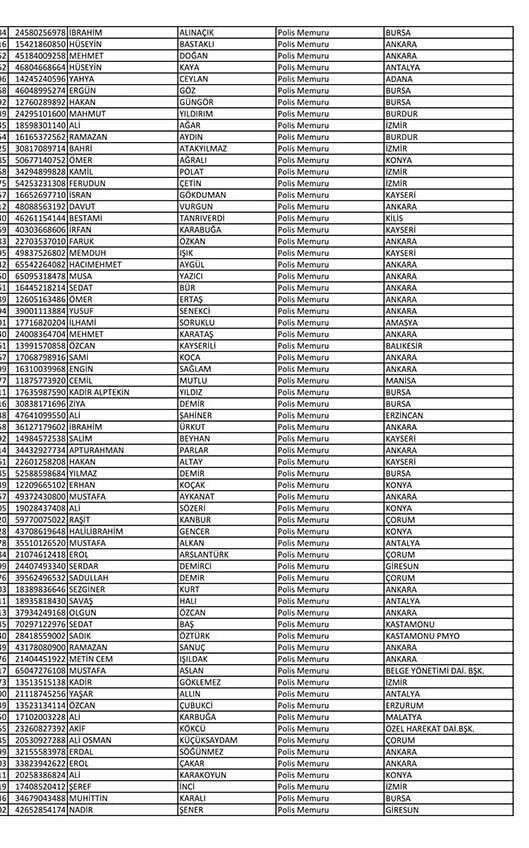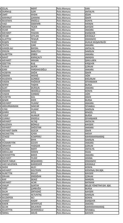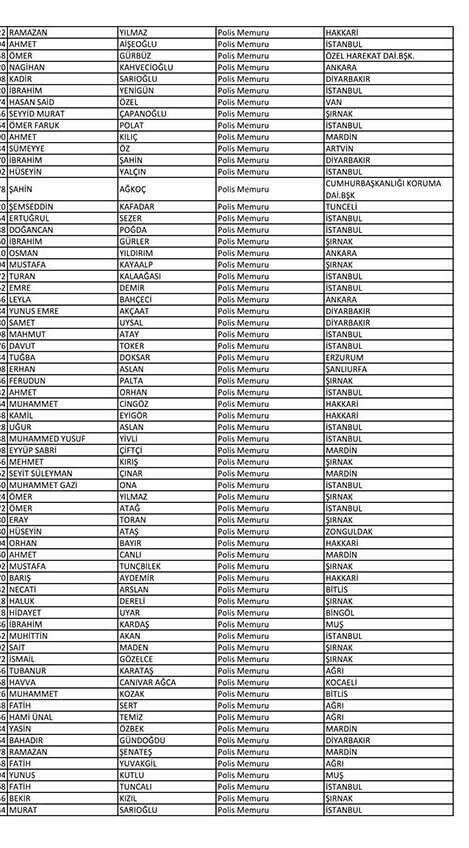 Emniyet Genel Müdürlüğü'nün kararıyla açığa alınan 9 bin 103 polisin isimleri belli oldu. İşte il il açığa alınan polislerin tam listesi.
