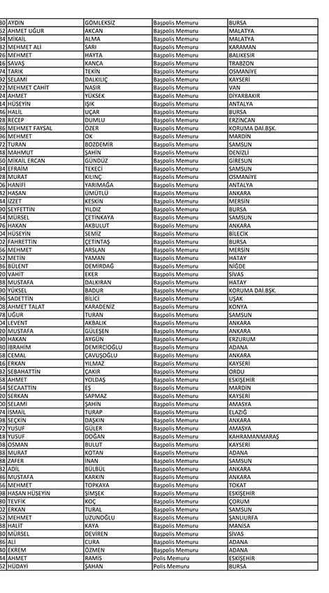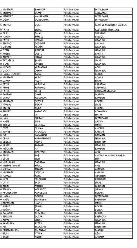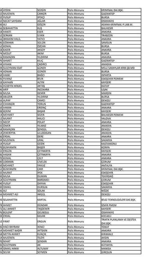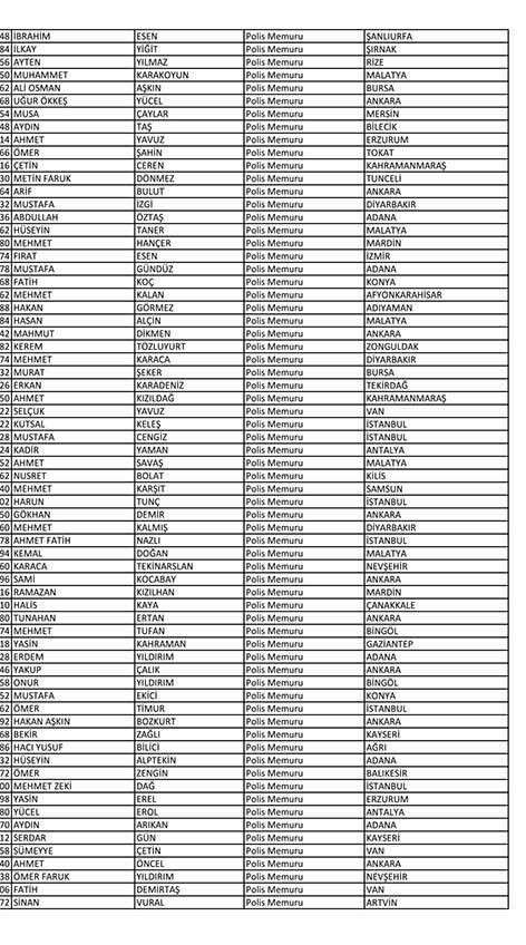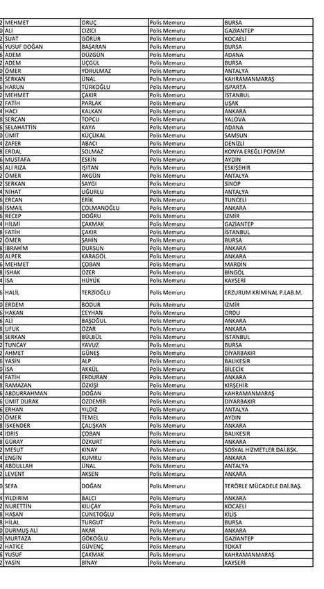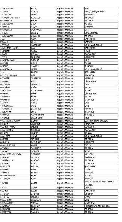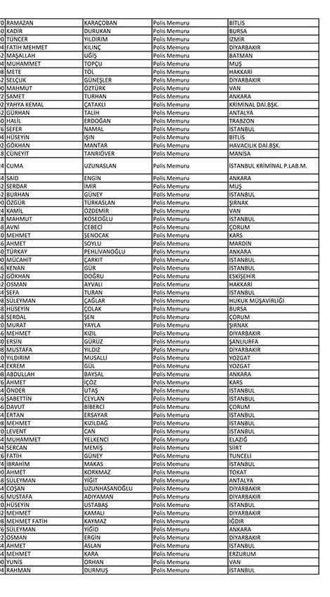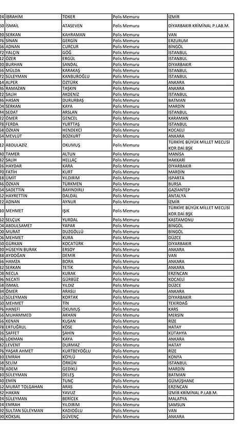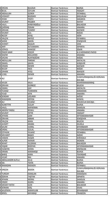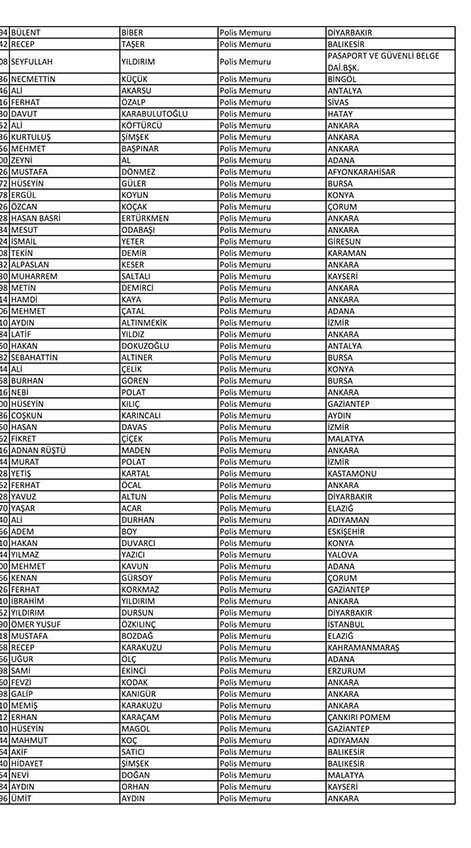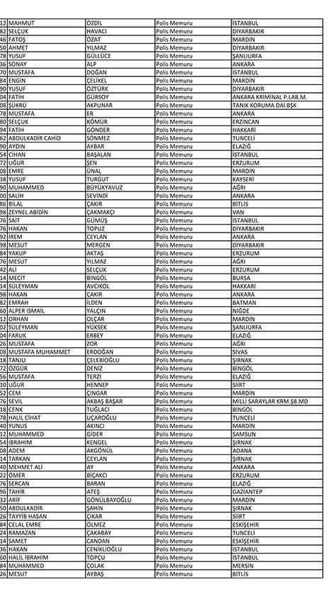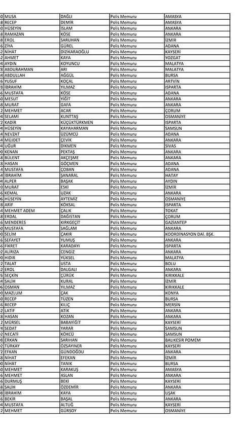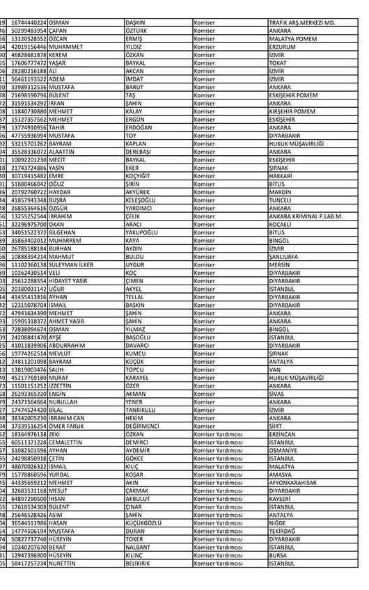 Emniyet Genel Müdürlüğü'nün kararıyla açığa alınan 9 bin 103 polisin isimleri belli oldu. İşte il il açığa alınan polislerin tam listesi.