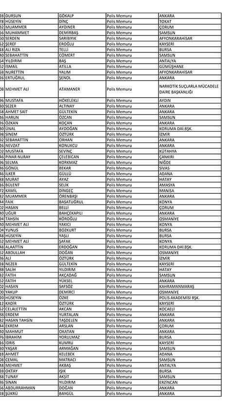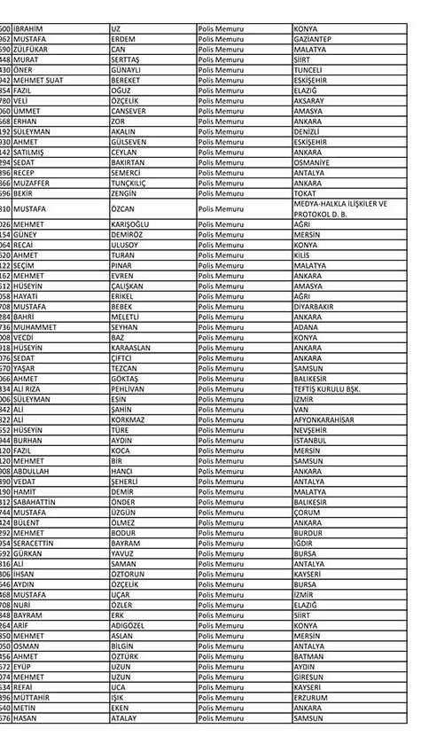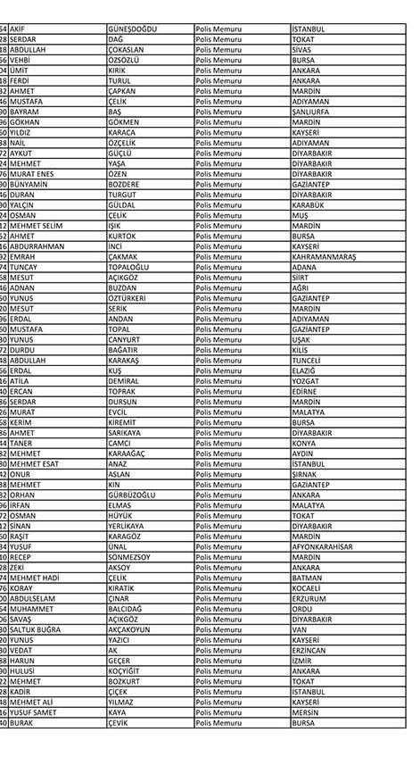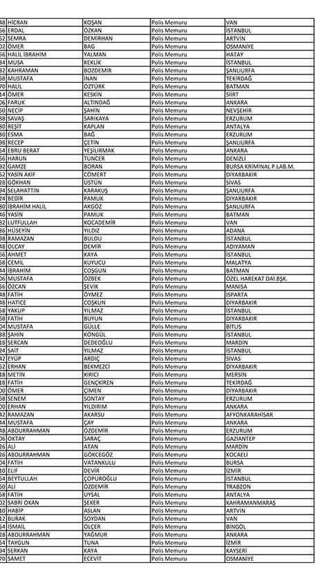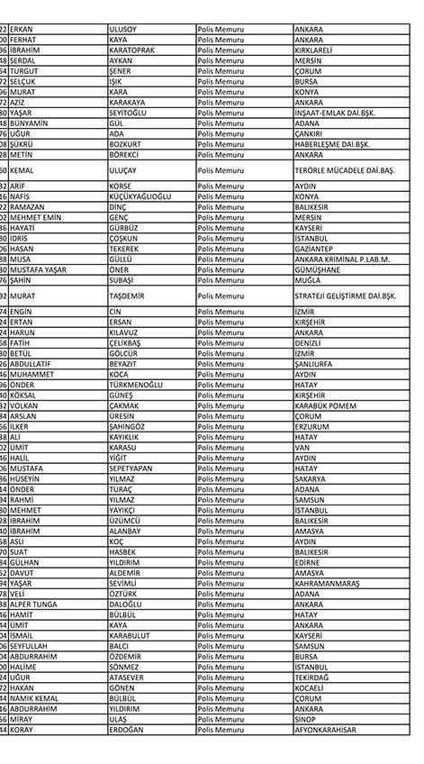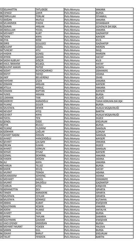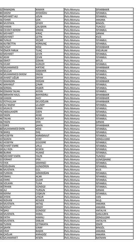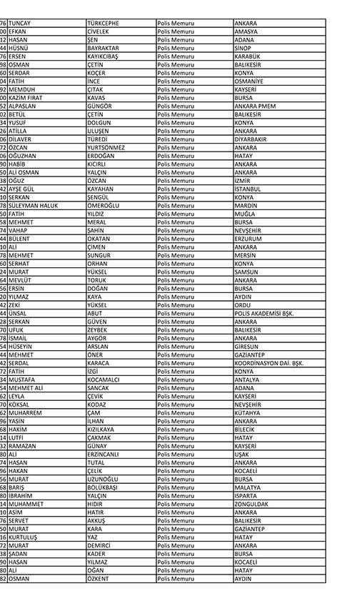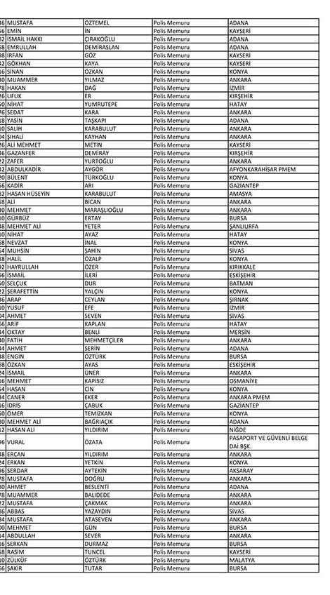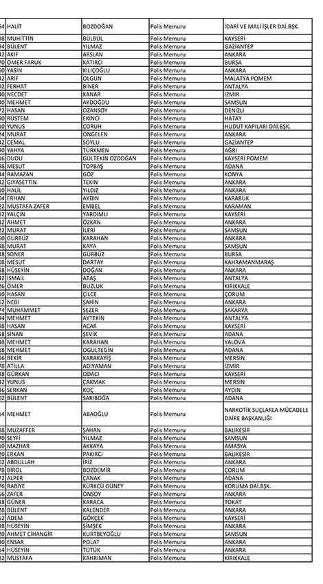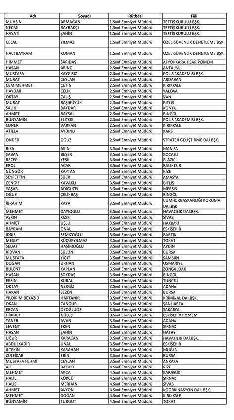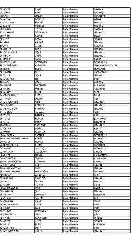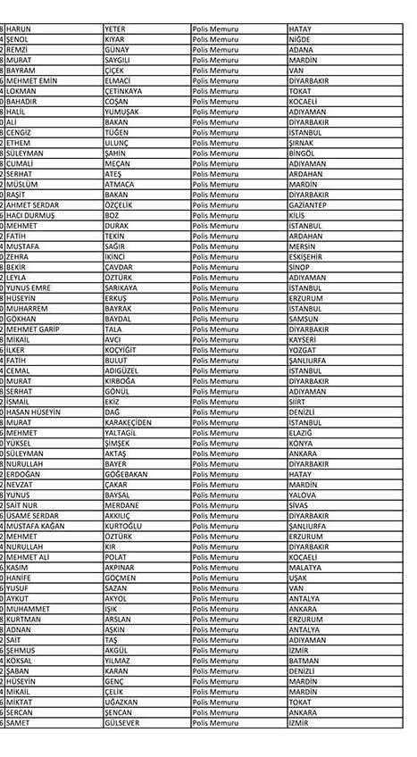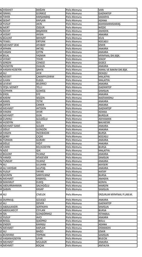 Emniyet Genel Müdürlüğü'nün kararıyla açığa alınan 9 bin 103 polisin isimleri belli oldu. İşte il il açığa alınan polislerin tam listesi.