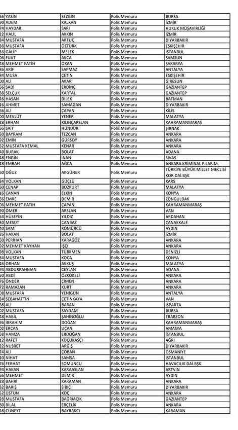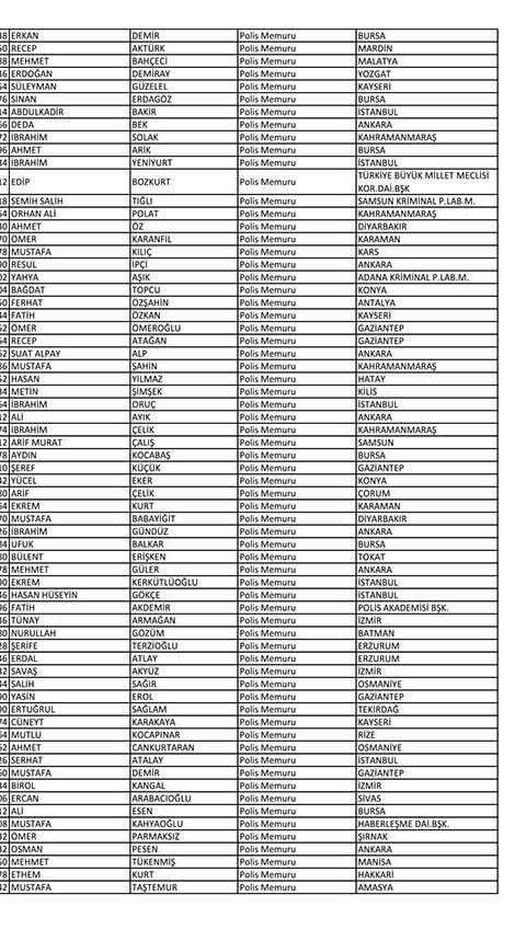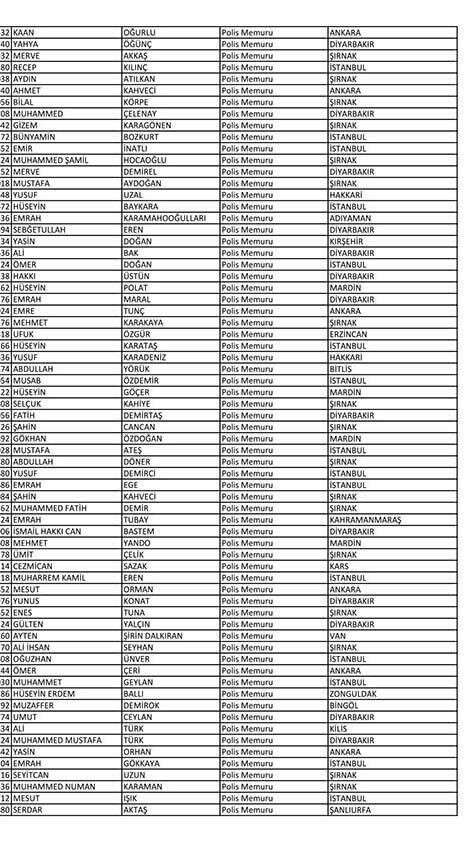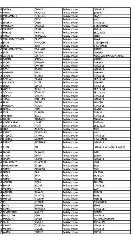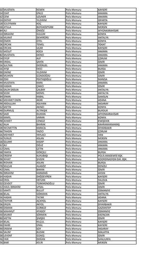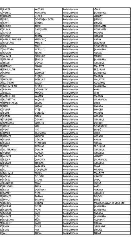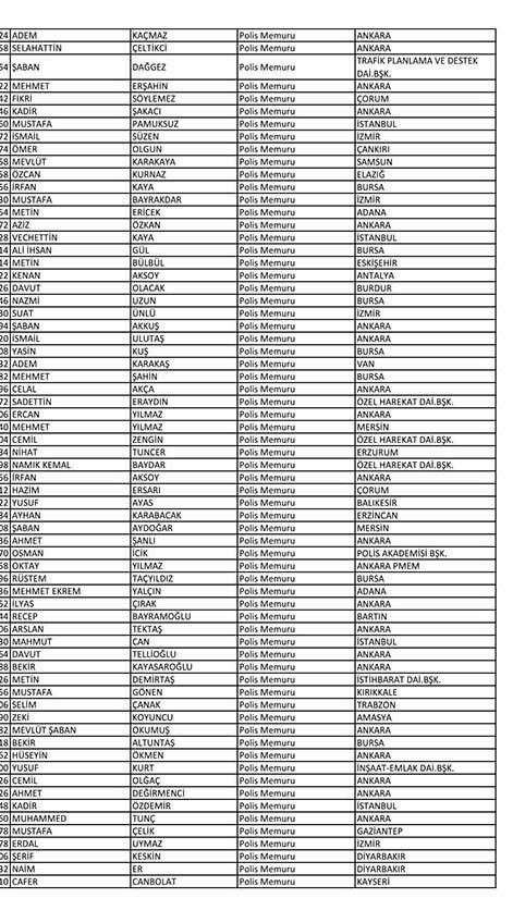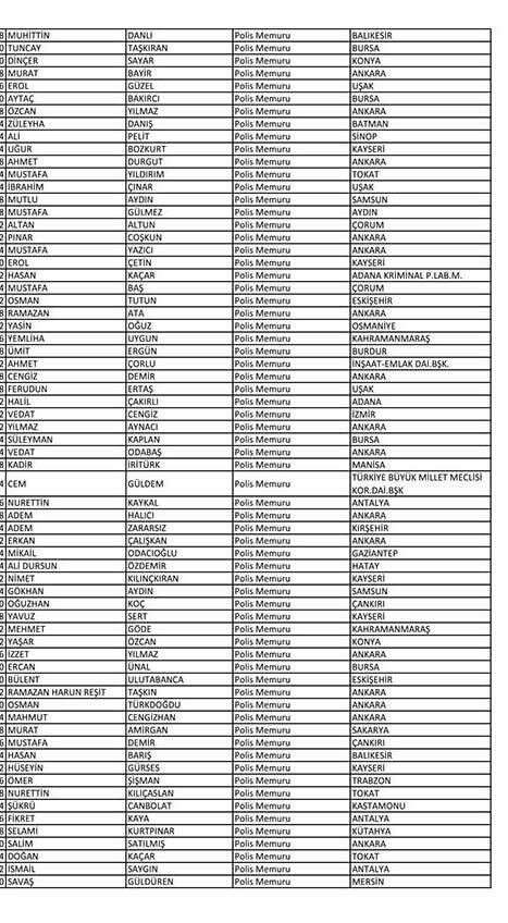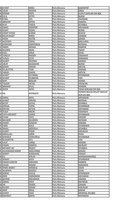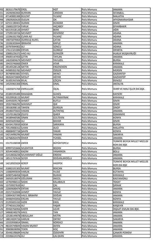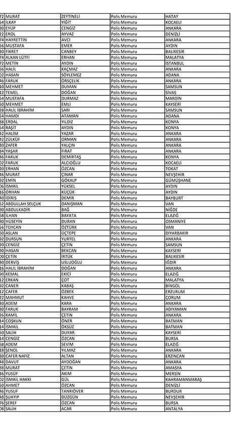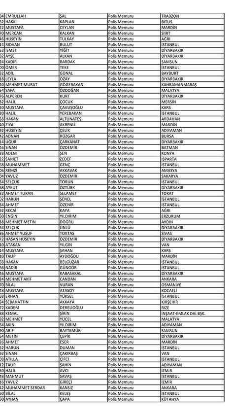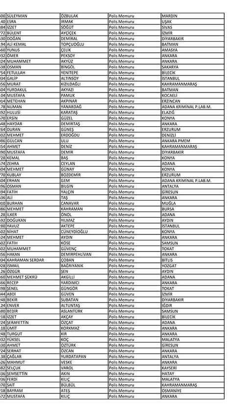 Emniyet Genel Müdürlüğü'nün kararıyla açığa alınan 9 bin 103 polisin isimleri belli oldu. İşte il il açığa alınan polislerin tam listesi.
