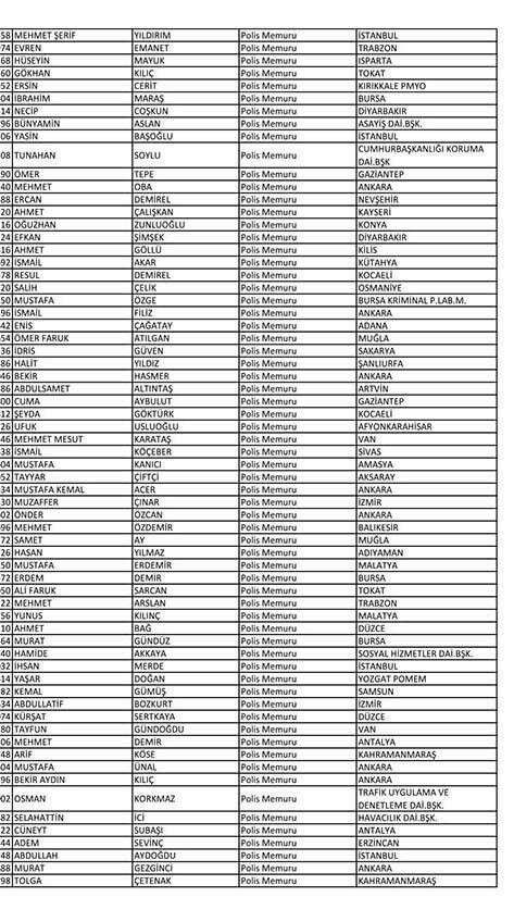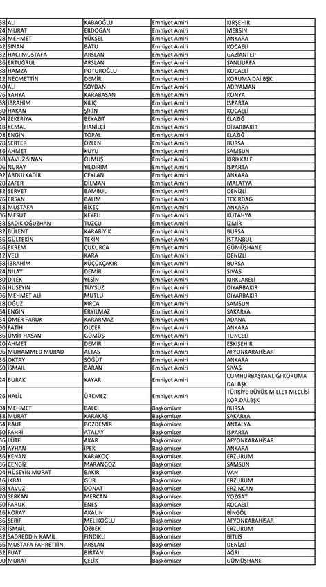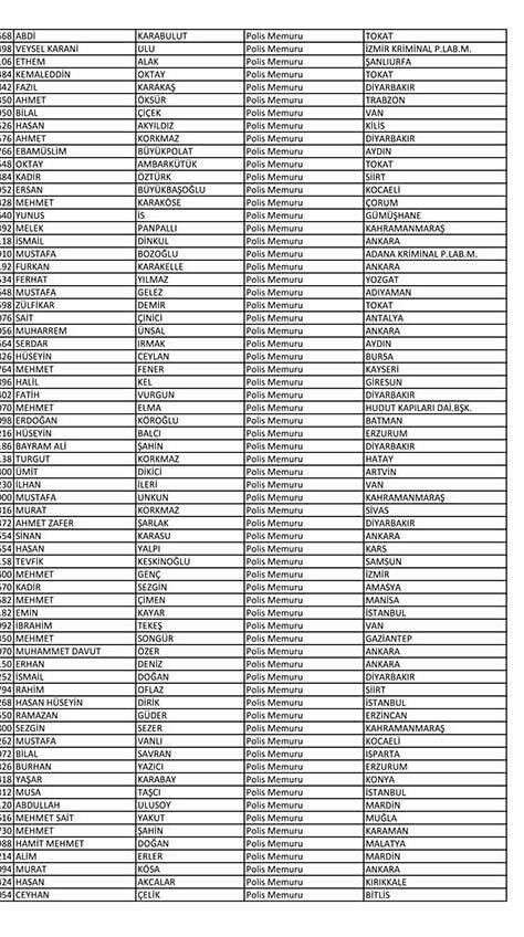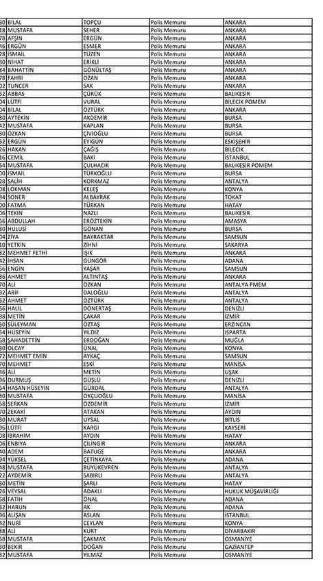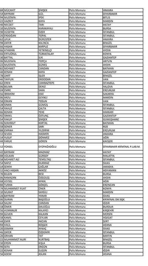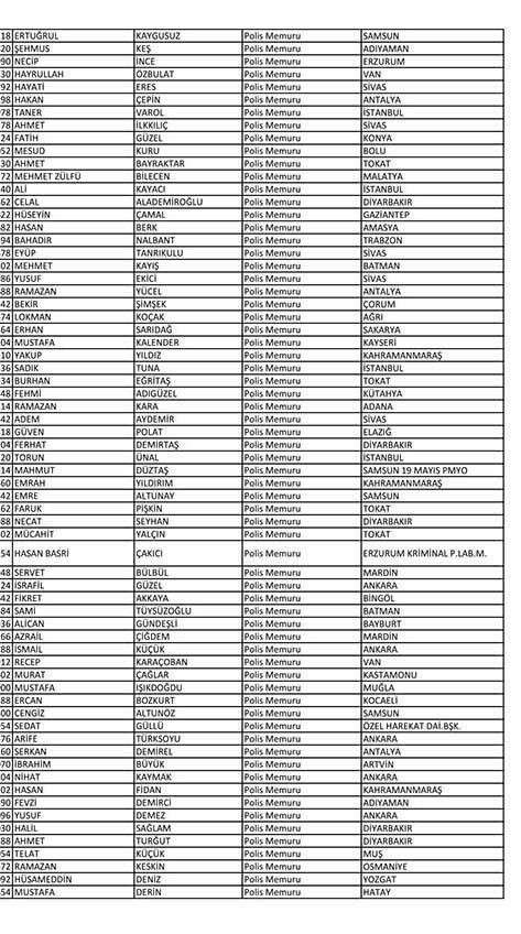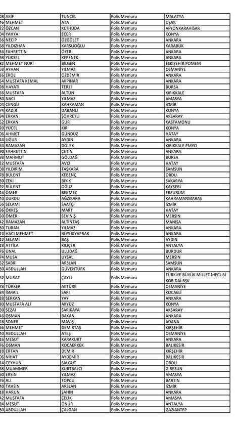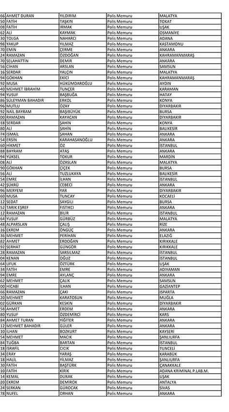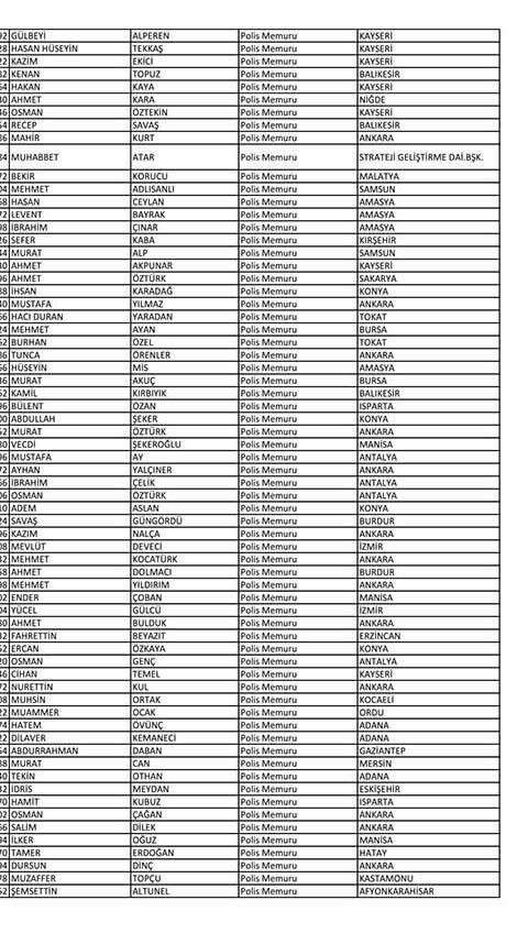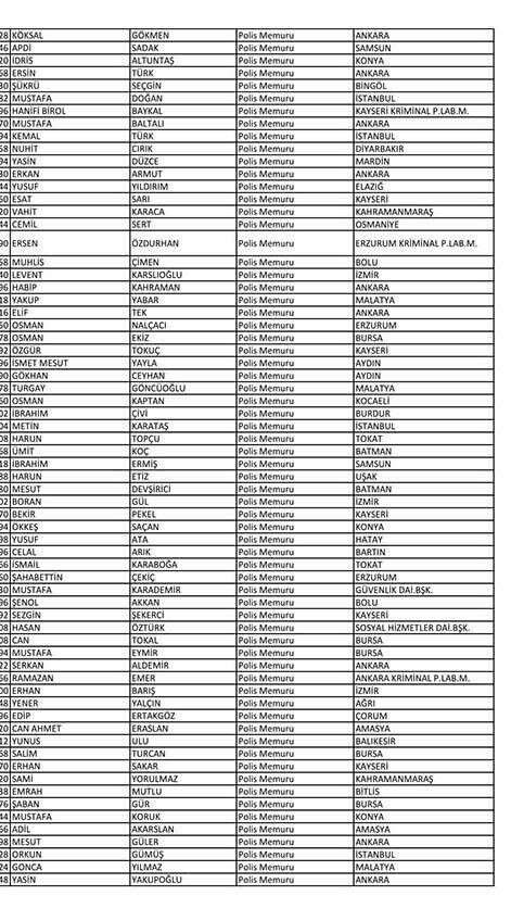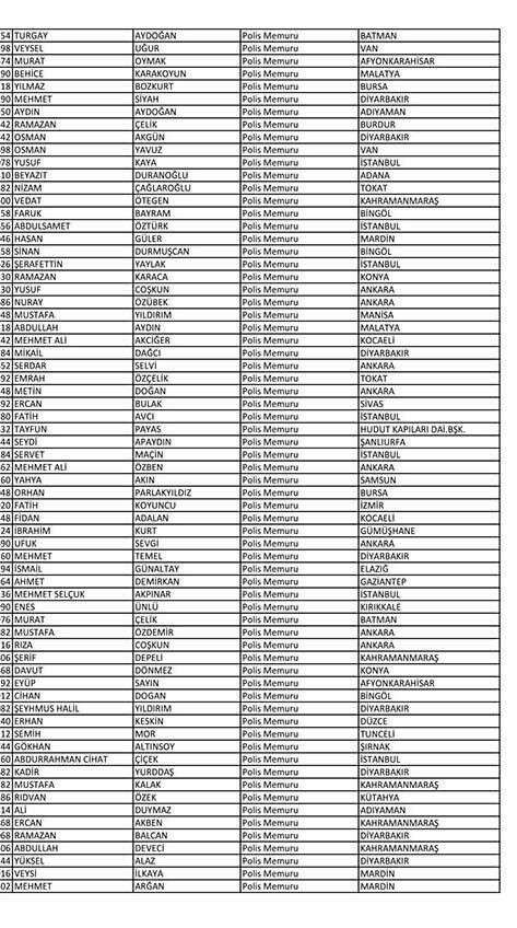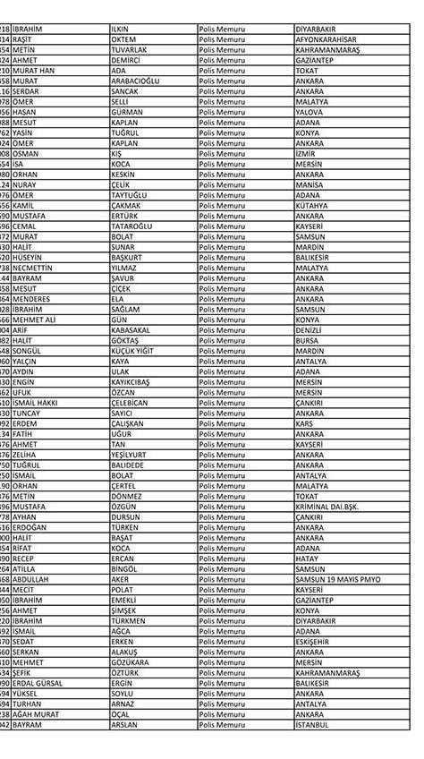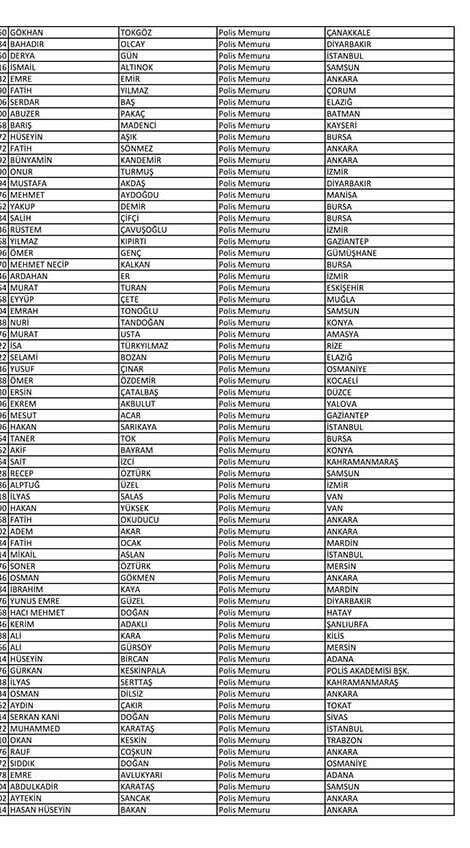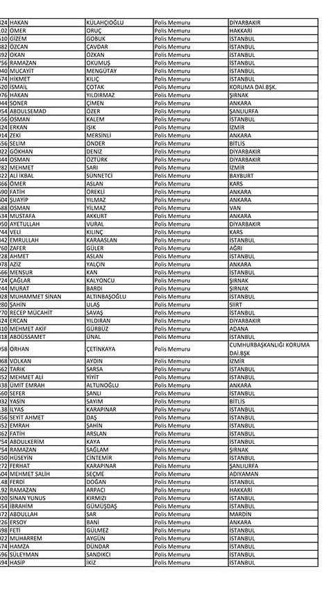 Emniyet Genel Müdürlüğü'nün kararıyla açığa alınan 9 bin 103 polisin isimleri belli oldu. İşte il il açığa alınan polislerin tam listesi.