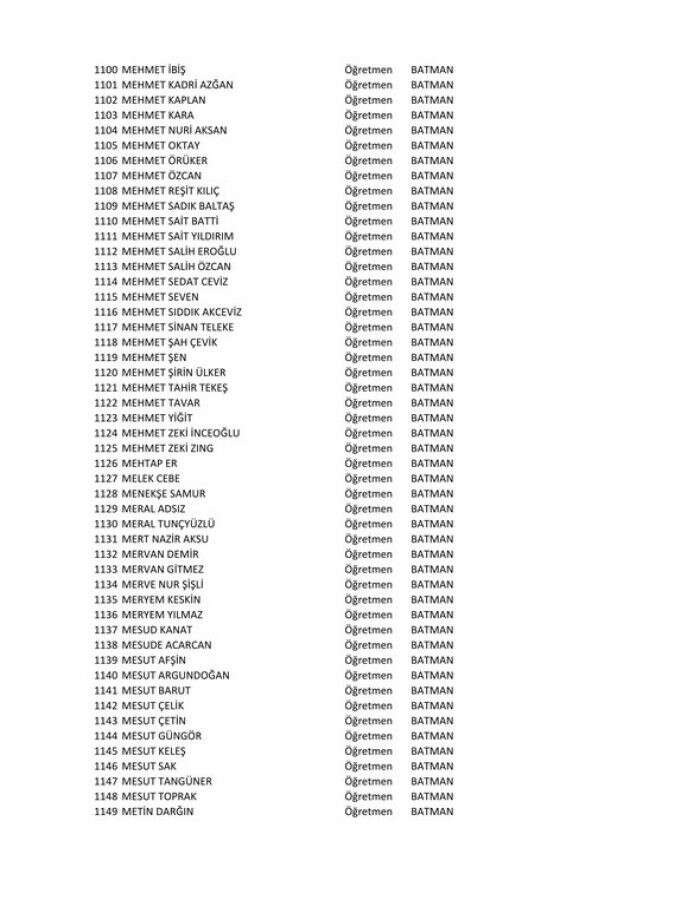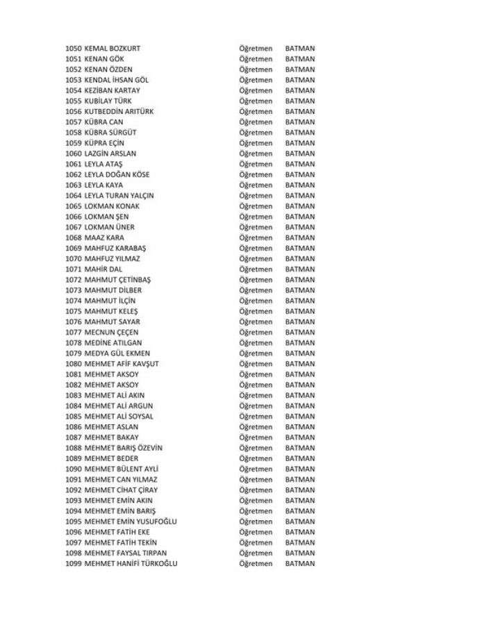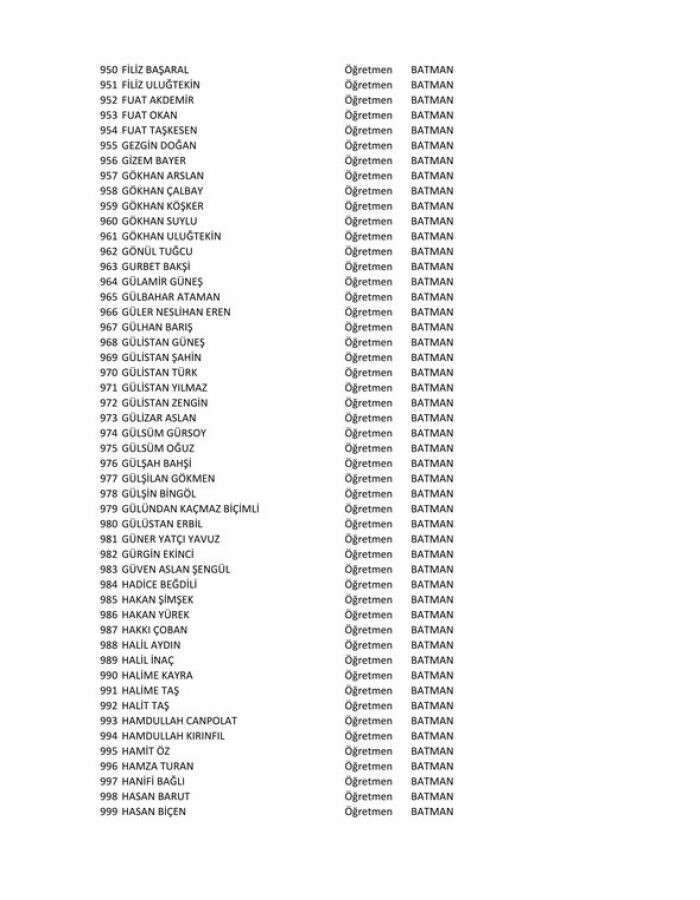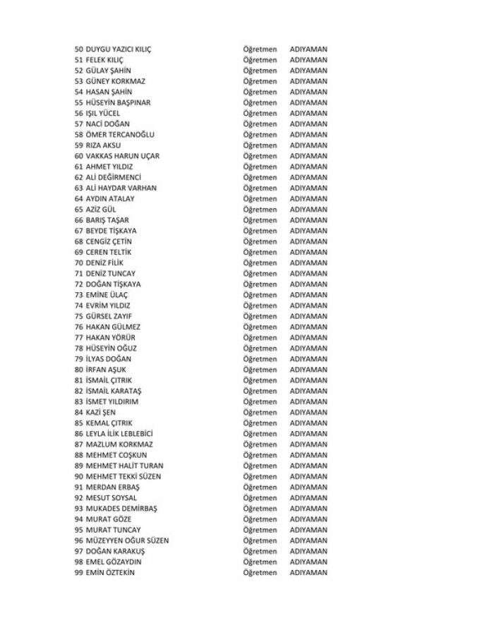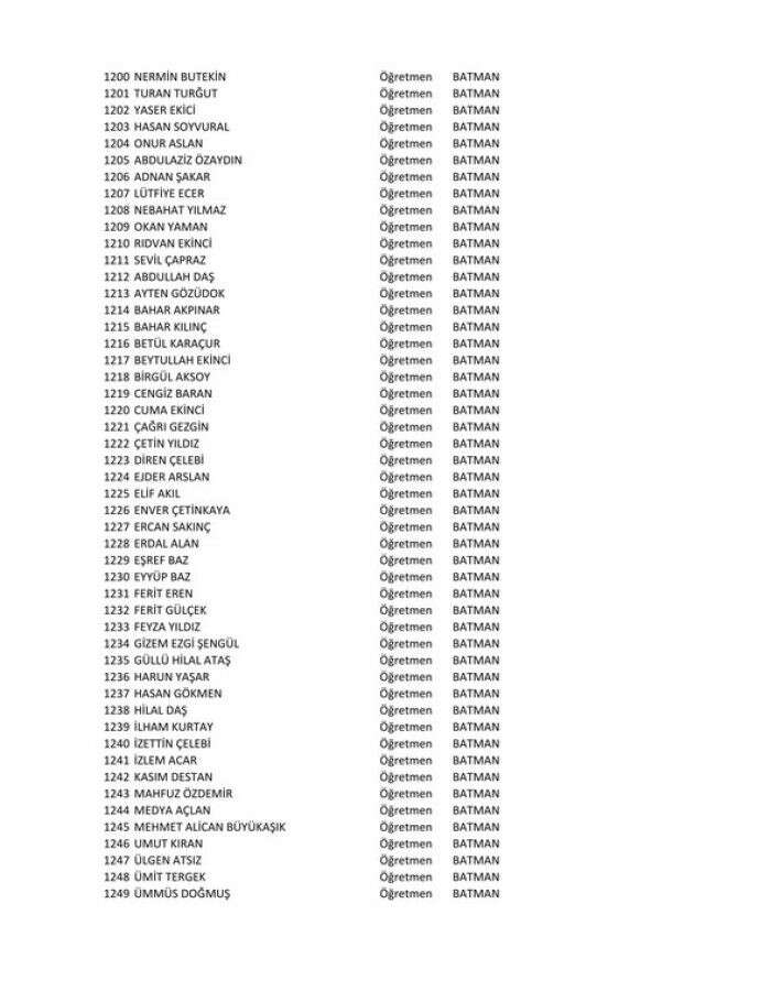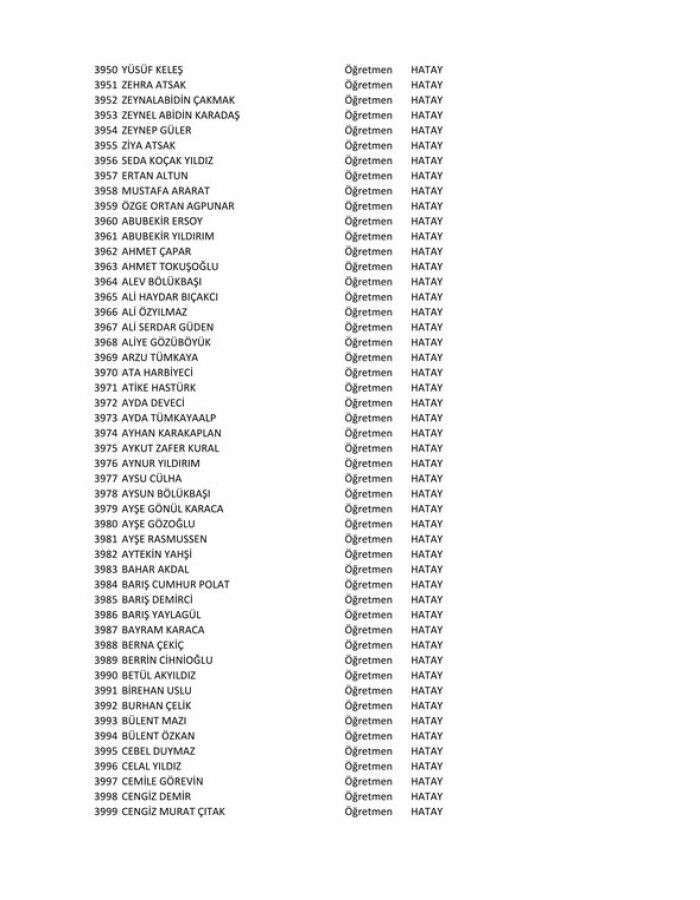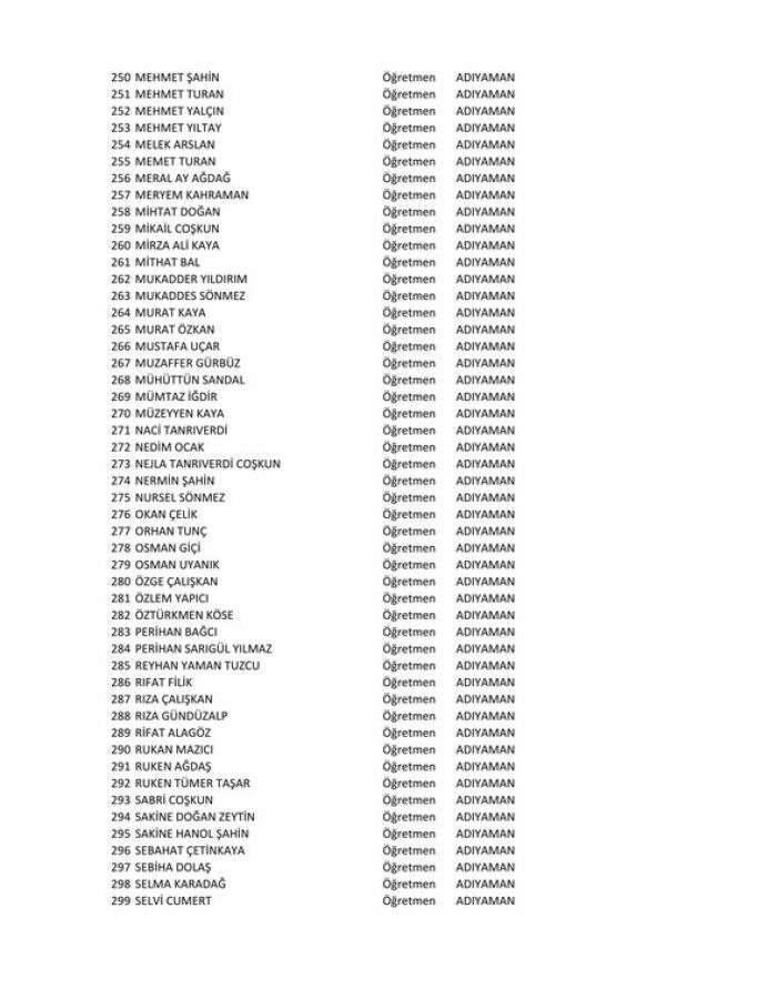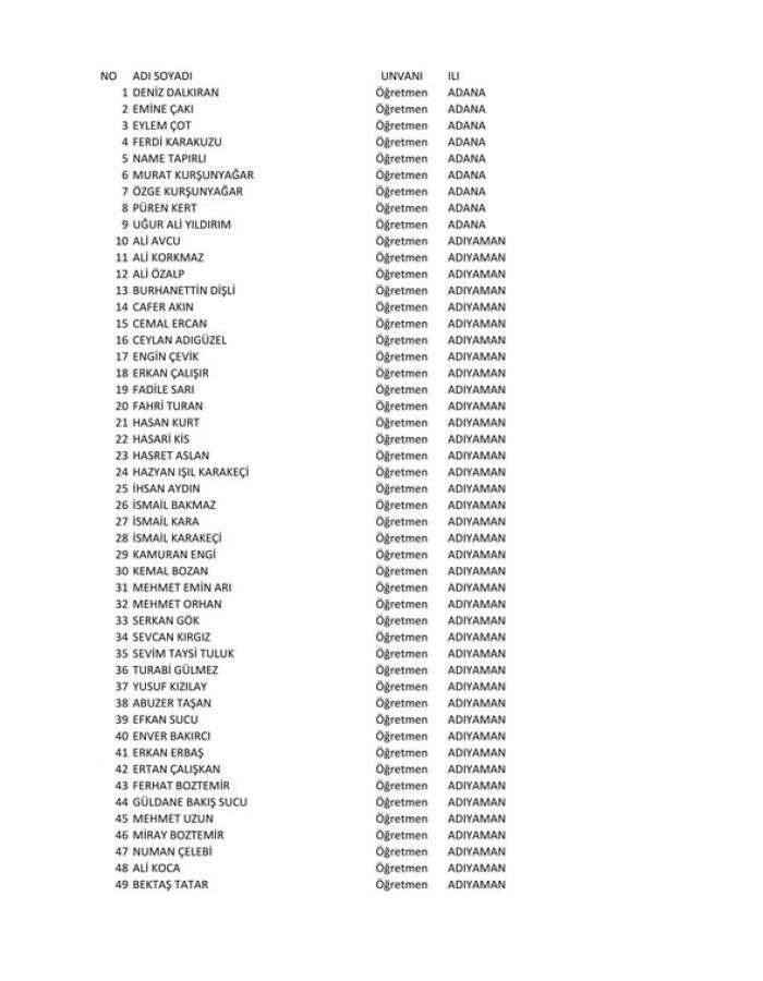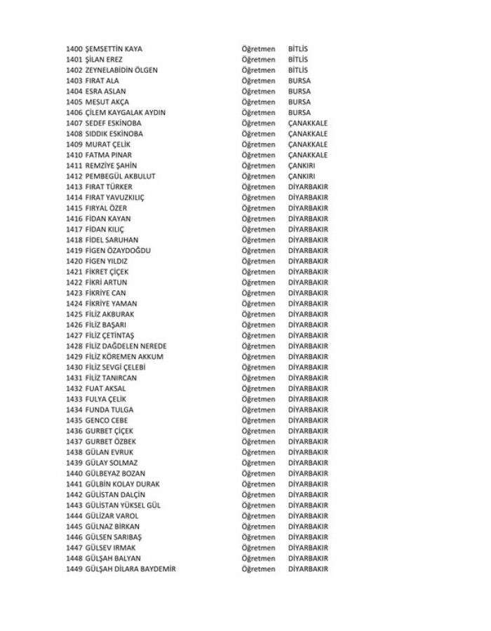 Milli Eğitim Bakanlığı bugün 6 bin 7 öğretmeni görevine iade etti. CHP Milletvekili Ceyhun İrgil, iade edilen öğretmenlerin tam listesini paylaştı. İşte göreve iade edilen ve Pazartesi günü görevine dönecek öğretmenlerin il il listesi...