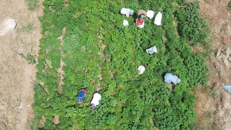 Depremin yaralarını üreterek saran Hataylı çiftçilerin biber hasadı mesaisi geçtiğimiz günlerde başladı. Türkiye'nin en bereketli topraklarından olan Amik Ovası'nda sıcak havayla olgunlaşan biberler, tarım işçileri tarafından kavurucu sıcakta zorlu şartlarda tek tek toplanıyor. Günlük 600 TL yevmiye alan tarım işçileri, acı biber hasadında oldukça zorlanıyorlar. Ellerini yüzlerine temas ettirdiklerinde biberin acılığını yaşayan işçiler, zorlu şartlarda mesailerini sürdürüyorlar. Hassa ilçesinde yaklaşık 6 dönüm arazisine kapya biber eken Sezai Kılınç da hasada başladı. İşçiler tarafından zorlu şartlarda özenle toplanan biber kilogram fiyatı 22 TL’den tarladan alıcı buluyor.